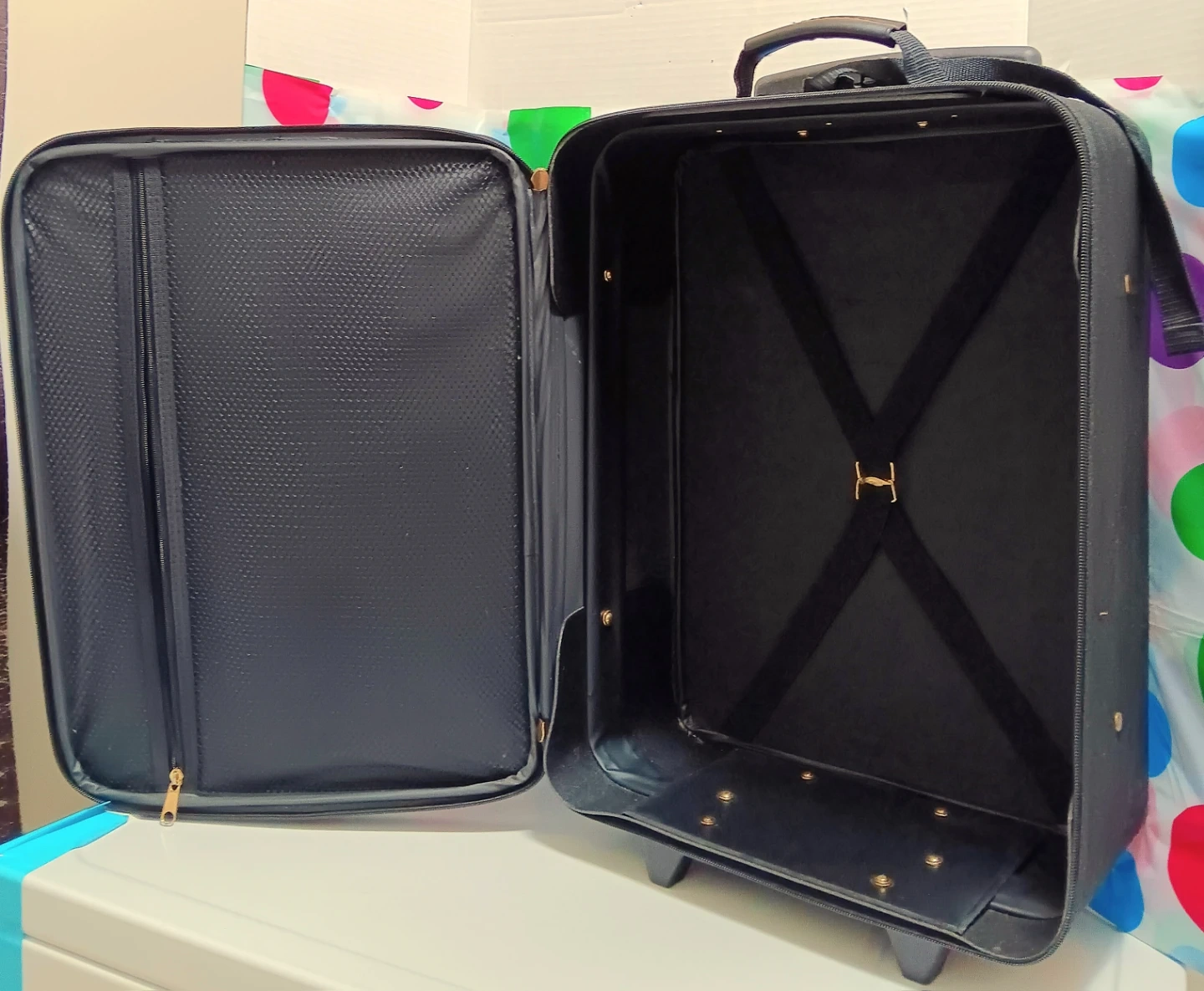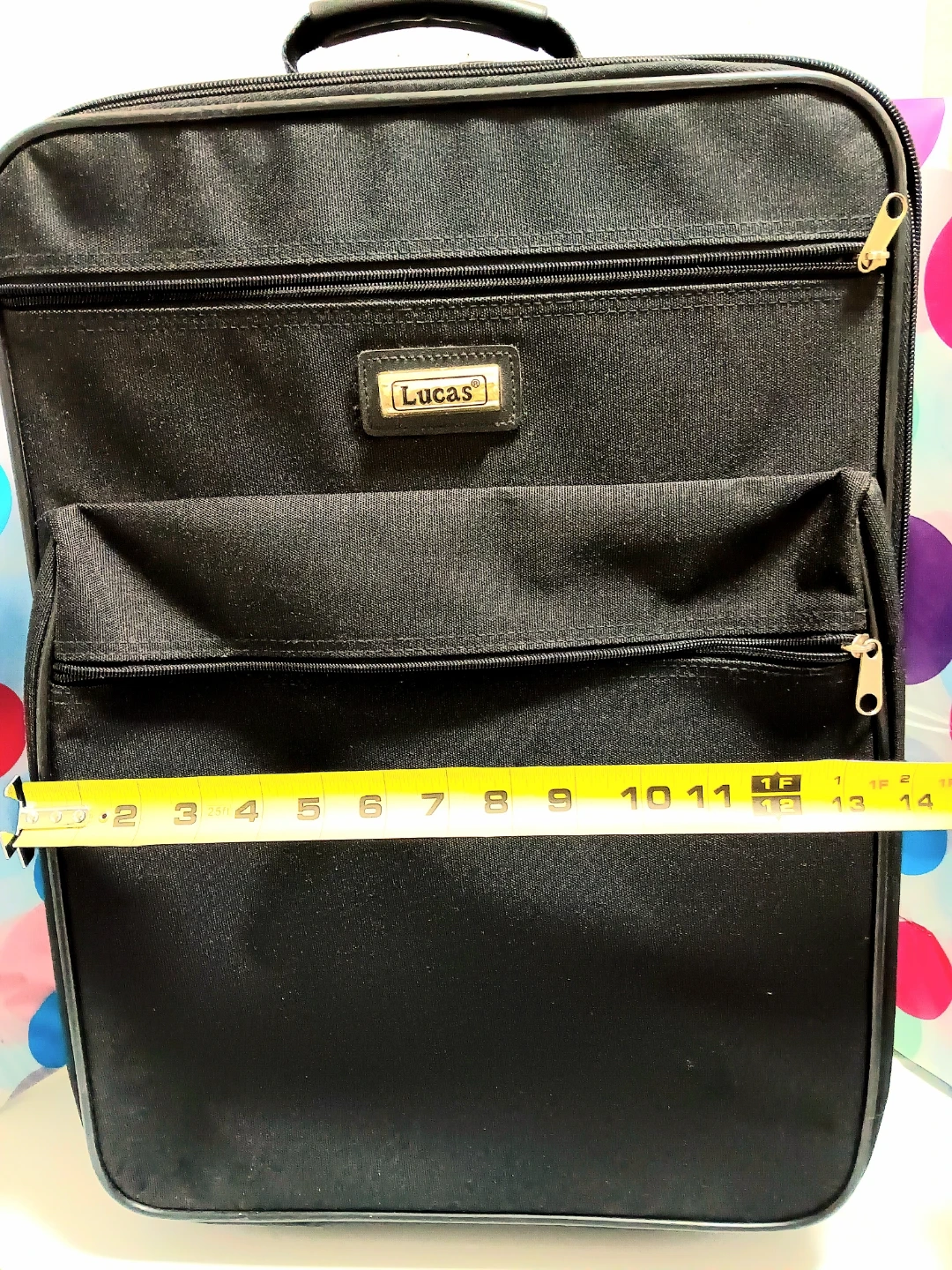 This Lucas luggage is in good condition and ready for your next adventure! It's a sturdy, wheeled suitcase, perfect for carry-on or shorter trips. Please note that this is a previously owned item, so it shows some signs of wear, but it's still fully functional and reliable.