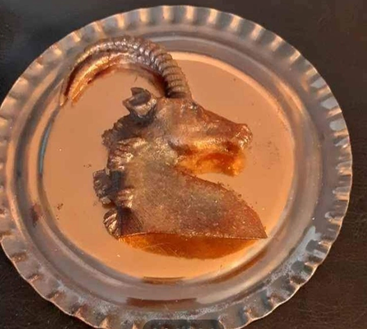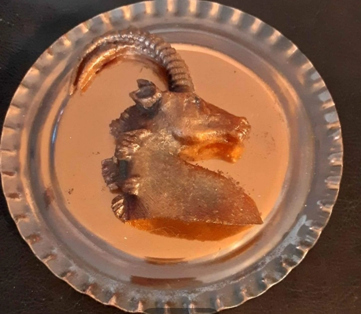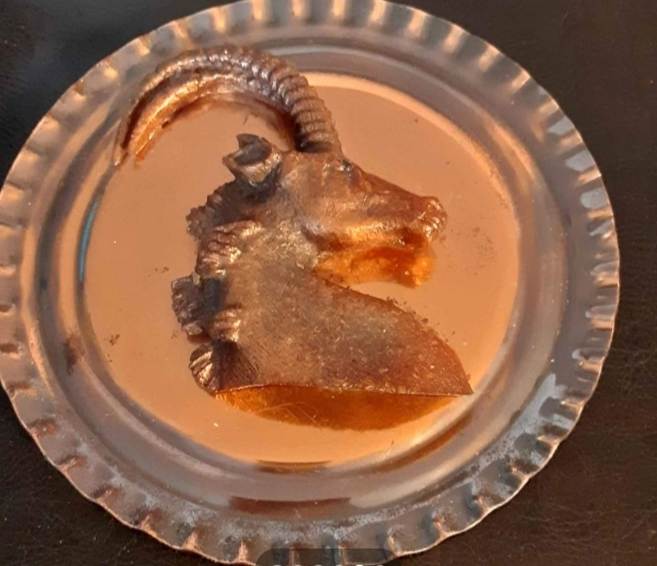 Copper wall hanging with a raised profile of an antelope. Features a hanging ring on the back.