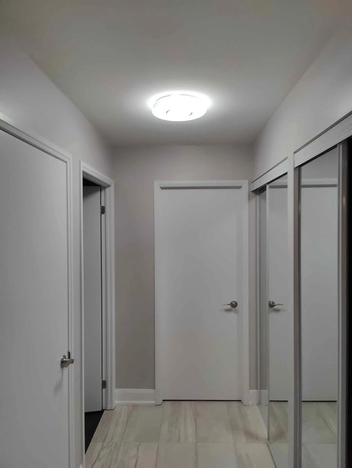 103 brightness levels of white. I just replaced this one for an 18 inch in my living room. Therefore I don't recommend this for an open concept living room. However, it is very bright for small rooms and hallways. (As seen in the pic of my hallway)