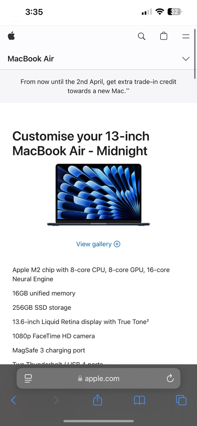 10Used MacBook Air. Midnight colour. Includes charger. Good condition. 13-inch screen. Apple M2 chip. Comes with apple care also