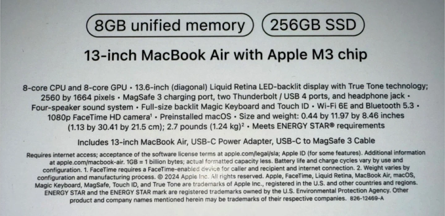 Up for sale is a 13.6-inch Apple MacBook Air (2024) with the M3 chip in like new condition. This MacBook was purchased in September 2024 and has been gently used for under a year. It’s in perfect working order and immaculate cosmetic shape – no scratches, dents, or issues whatsoever. Battery health is 97% of original (only ~90 charge cycles), so you’re essentially getting a new MacBook Air with outstanding battery life. Comes with all original packaging and accessories. (Original purchase receipt available upon request for warranty purposes.) • Specs: Apple M3 chip (8‑core CPU & 8‑core GPU), 8GB unified memory, 256GB fast SSD storage. 13.6” Liquid Retina display. Runs the latest macOS smoothly – ideal for students, professionals, or anyone who needs a reliable ultraportable laptop. • Condition: Like New – used lightly in a smoke-free home. Screen is pristine and device has been kept in a protective sleeve. No damage or repairs. • Battery: 97% health with ~90 cycles (virtually as good as new). You can use this unplugged for up to 15 hours on a charge – great longevity. • Includes: Original Apple box, 30W USB-C charger, and USB-C charging cable. All the original accessories and manuals are intact – it will feel like unboxing a new Mac. • Warranty: Still under Apple’s standard limited warranty until Sept 2025. Original receipt can be provided for proof of purchase or any warranty claims. (No AppleCare+ on this unit, but you have peace of mind with the remaining factory warranty.) Why Buy This MacBook Air? It offers M3 chip performance (efficient 8-core CPU/GPU) in an ultra-light design – perfect for on-the-go use. With this gently-used unit, you save on retail price and tax, yet get a device that’s indistinguishable from new. It boots fast, handles everyday tasks, creative apps, and multi-tab browsing with ease. The battery is nearly new, so you won’t be tied to an outlet. I’m only selling because I upgraded to a MacBook Pro for work. My loss is your gain – this is a fantastic deal for a practically new MacBook Air at a discount!