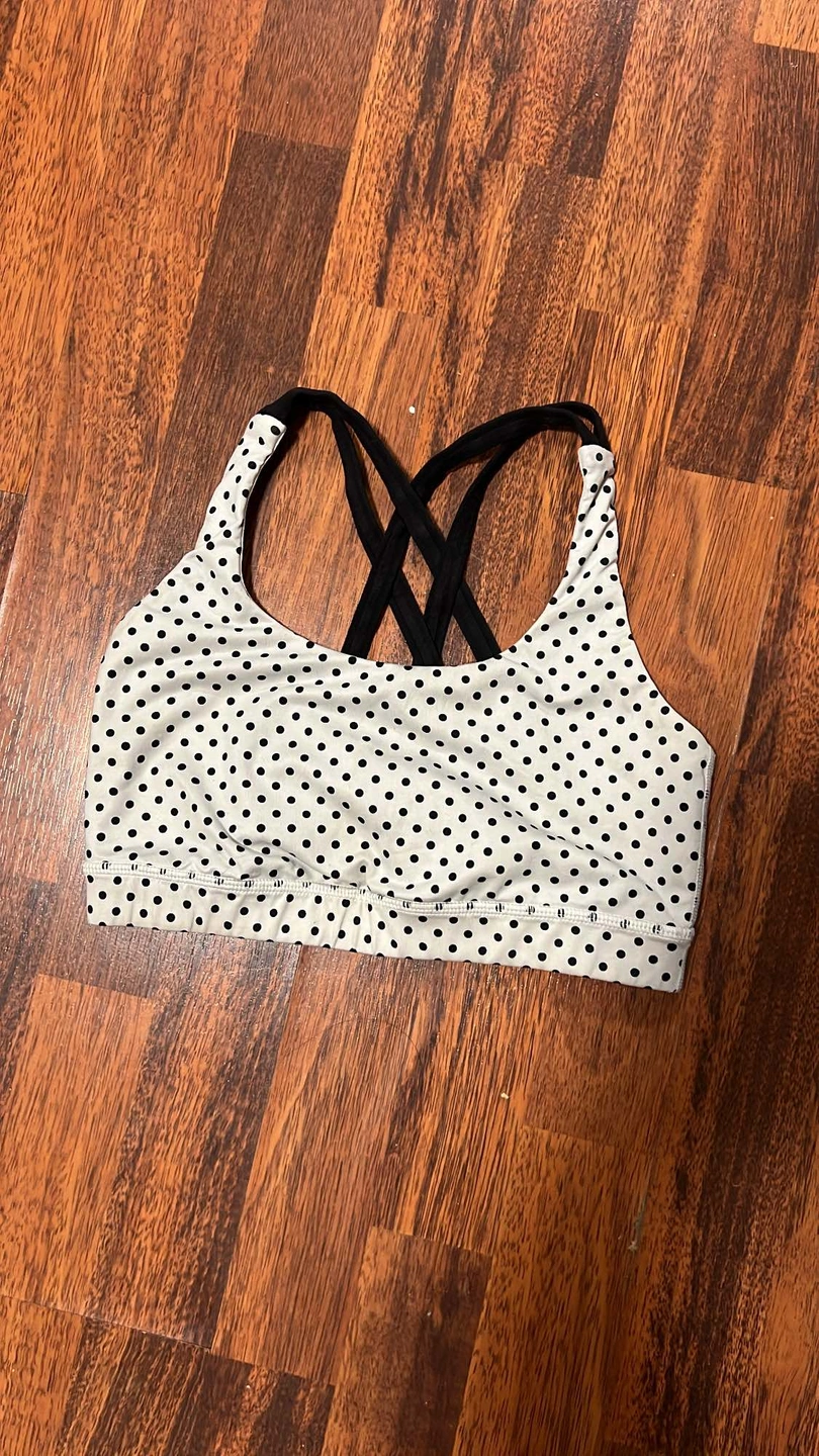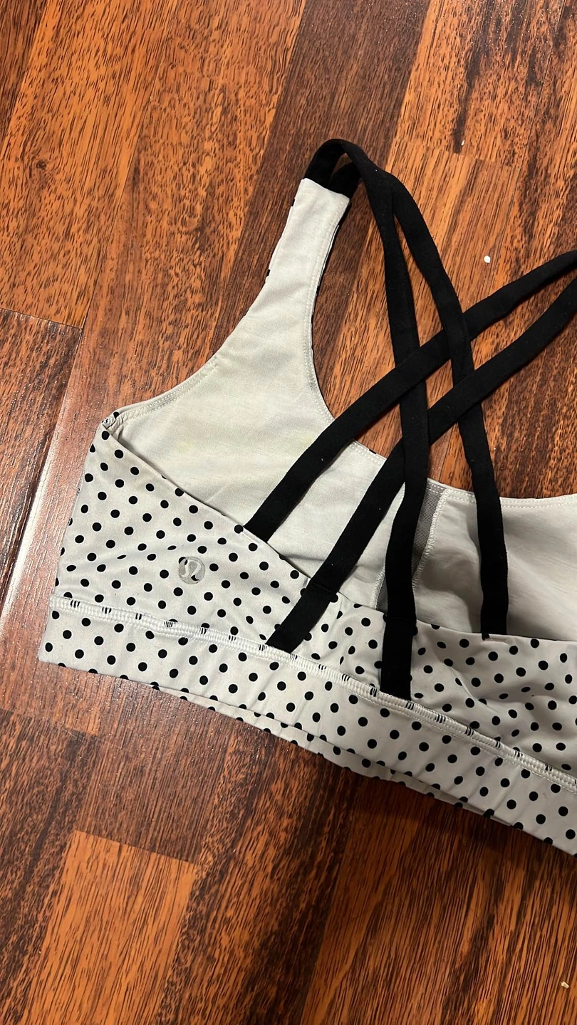 150Lululemon Energy Bra Low support bra with a wide band under the bust and full coverage in front. Size 8.