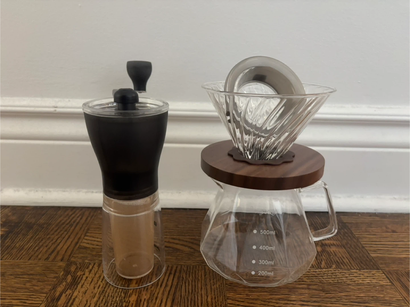 Manual Coffee Grinder and Glass Pour-Over Coffee Maker Set