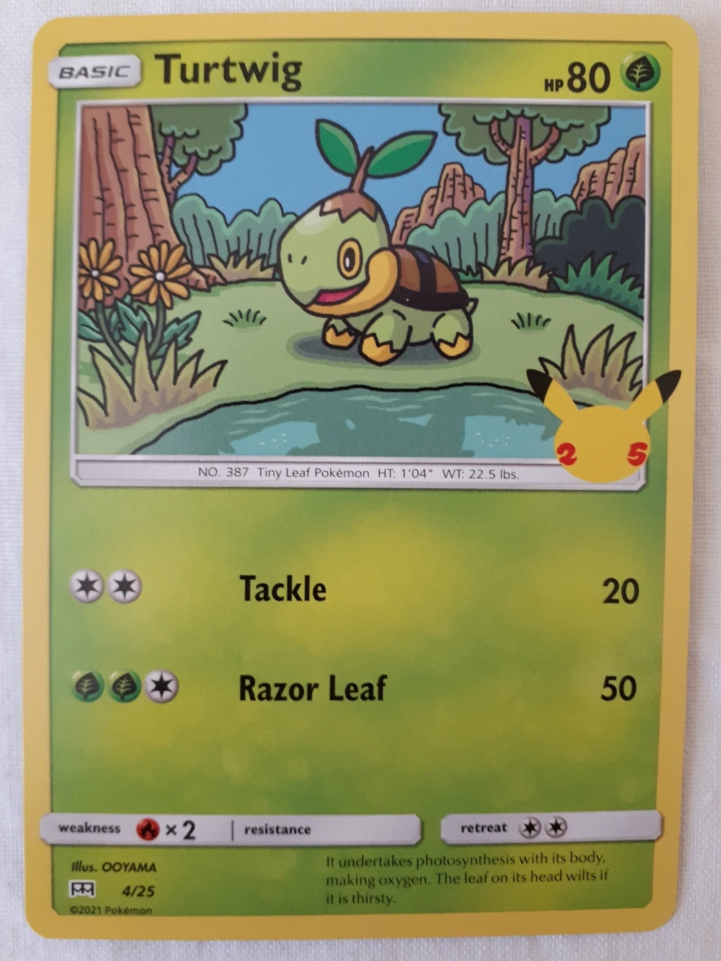 34Pokemon TCG McDonalds 25th Anniversary Turtwig Card. This is the NON HOLO version. Good condition. Please see pics and judge.for yourself Pick up humber college blvd and hwy 27 Shipping available for $1.30 Cash, paypal, e-transfer accepted.