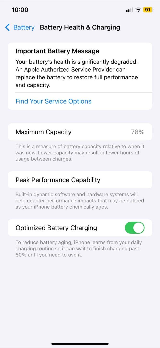 •battery capacity 78% lasts me a long time as a teen who’s on their phone 25/7