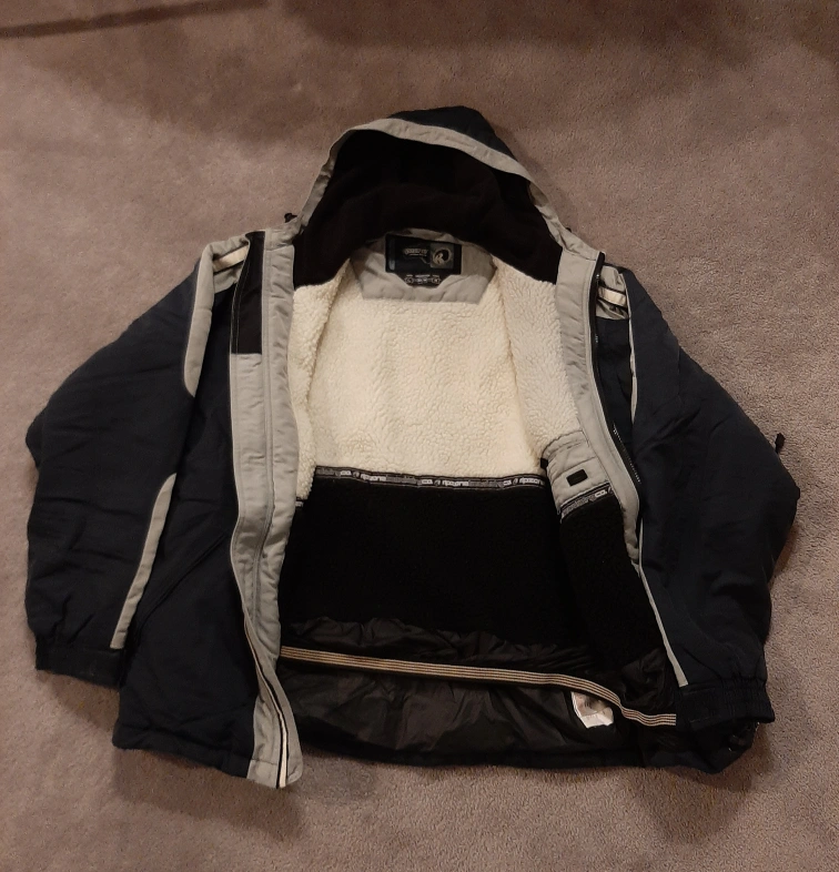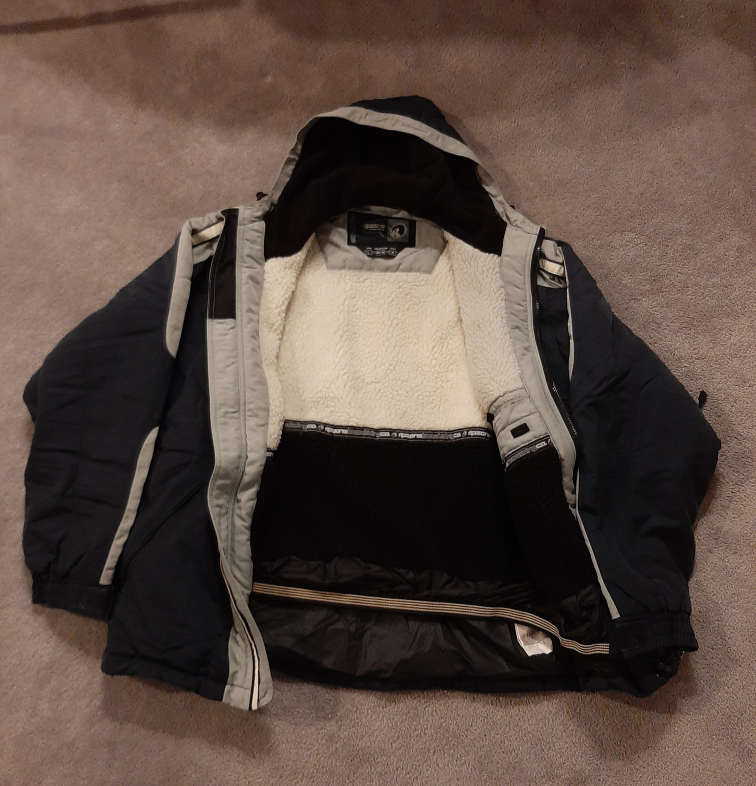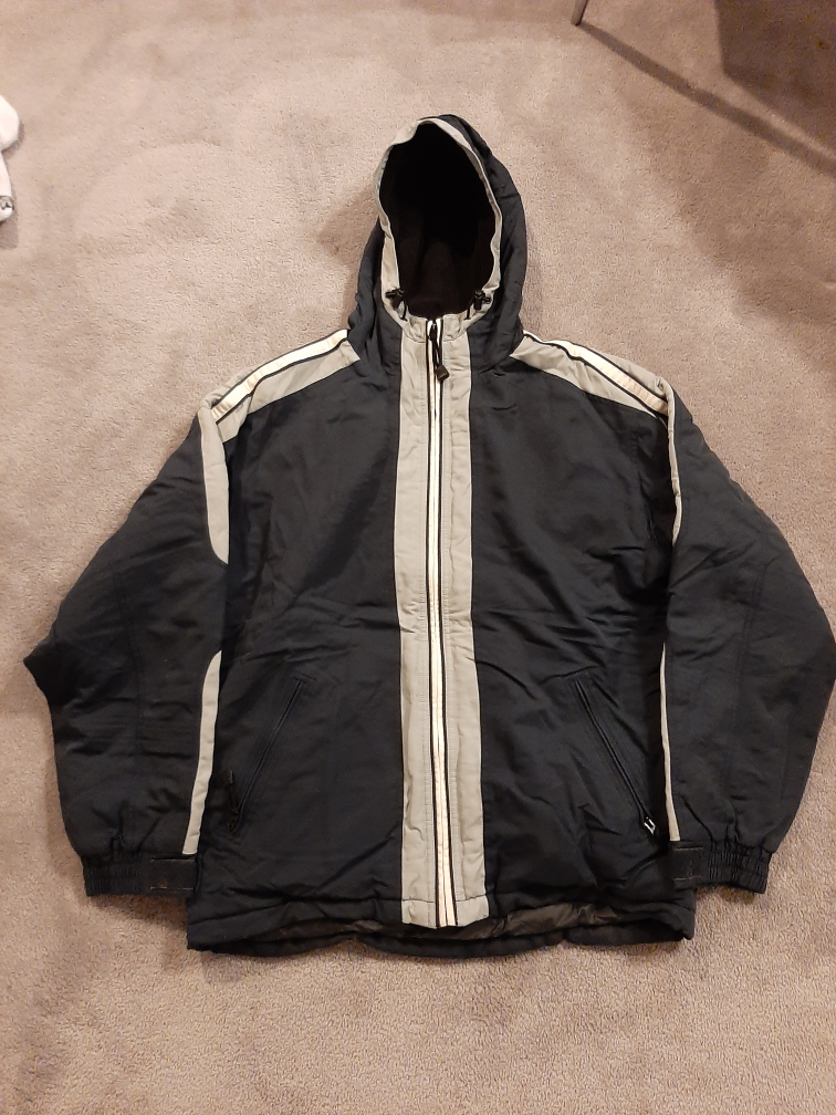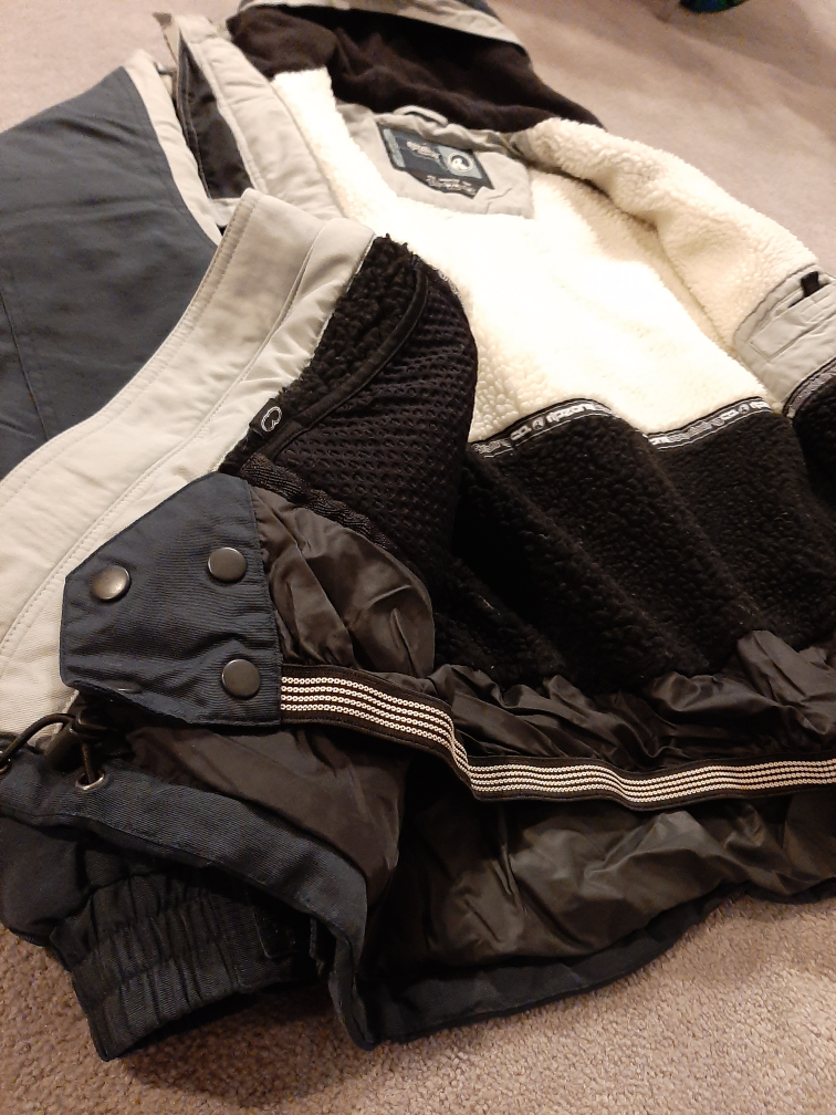 21Excellent condition winter sport jacket (snowboarding, skiing, snow shoeing, etc) Stored in pet and smoke free home Features: - High collar - Velcro cuffs - cuff and hood adjustability - Underarm ventilation zips - Sherpa lined - Snow skirt to prevent snow from getting underneath the jacket - 4 pockets in total - made in Korea - pass clip $60