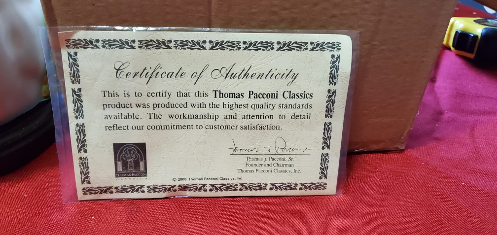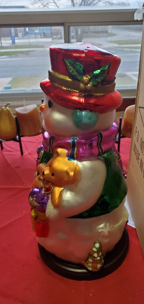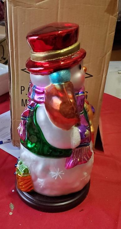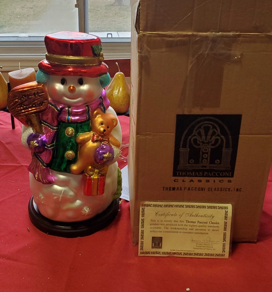 Brand new in original box. This beautiful Thomas Pacconi Classics Vintage blown glass handpainted tabletop Snowman is 16" tall with a wooden base. It comes with a Certificate of authenticity. Asking for $95 or best offer.