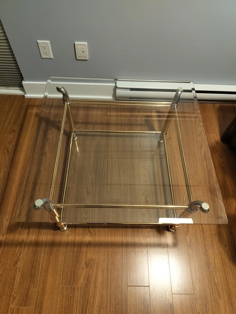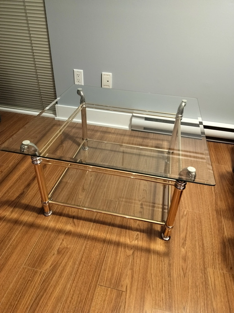 2 level glass surface; metal frame Pet free and smoke free home Minor wear and tear Self-pick up in North Coquitlam area