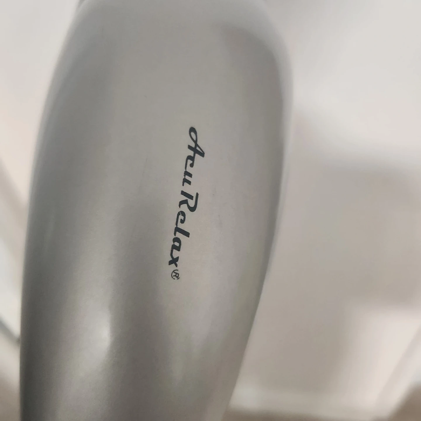 This is an AcuRelax Pro-Massager, model DF-503. It's a handheld massager with a 26W power consumption. The device operates on 100-120V input and 50/60Hz frequency. It's useful for targeted muscle relief.