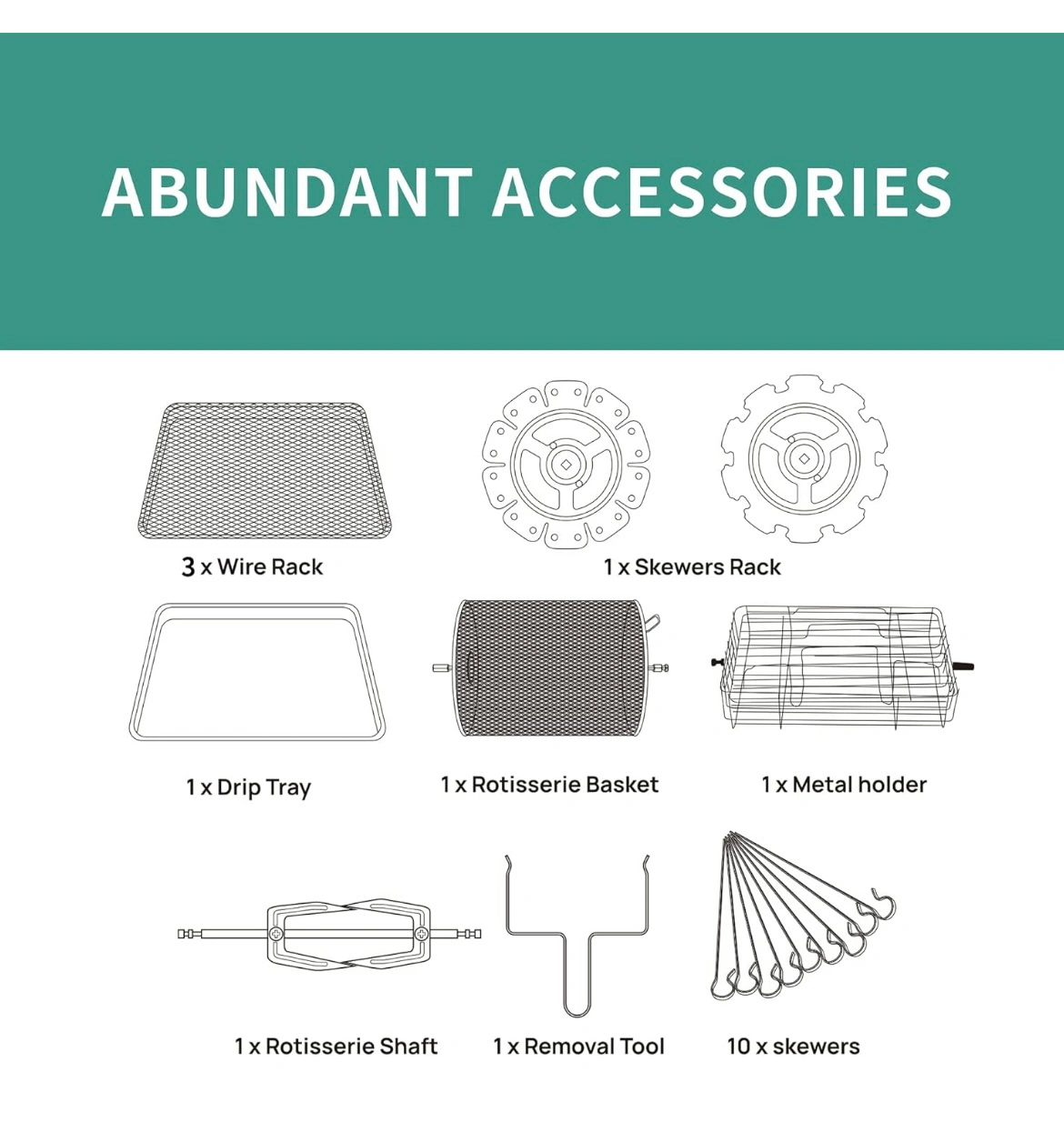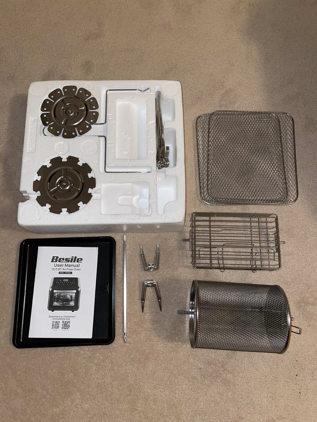 65BEST OFFER TAKES IT! See images for FULL details… Lightly used for about a week - I got another as a gift so I’m selling this one. Basically NEW! ALL accessories included, OEM box and manual included as well! Some minor scratches on unit, tested and unit was fully functional. Light cleaning recommended. **Delivery to some locations or public meetups is possible depending on location** https://www.amazon.com/Besile-Rotisserie-Dehydrator-Reheater-Accessories/dp/B0928R1L2G