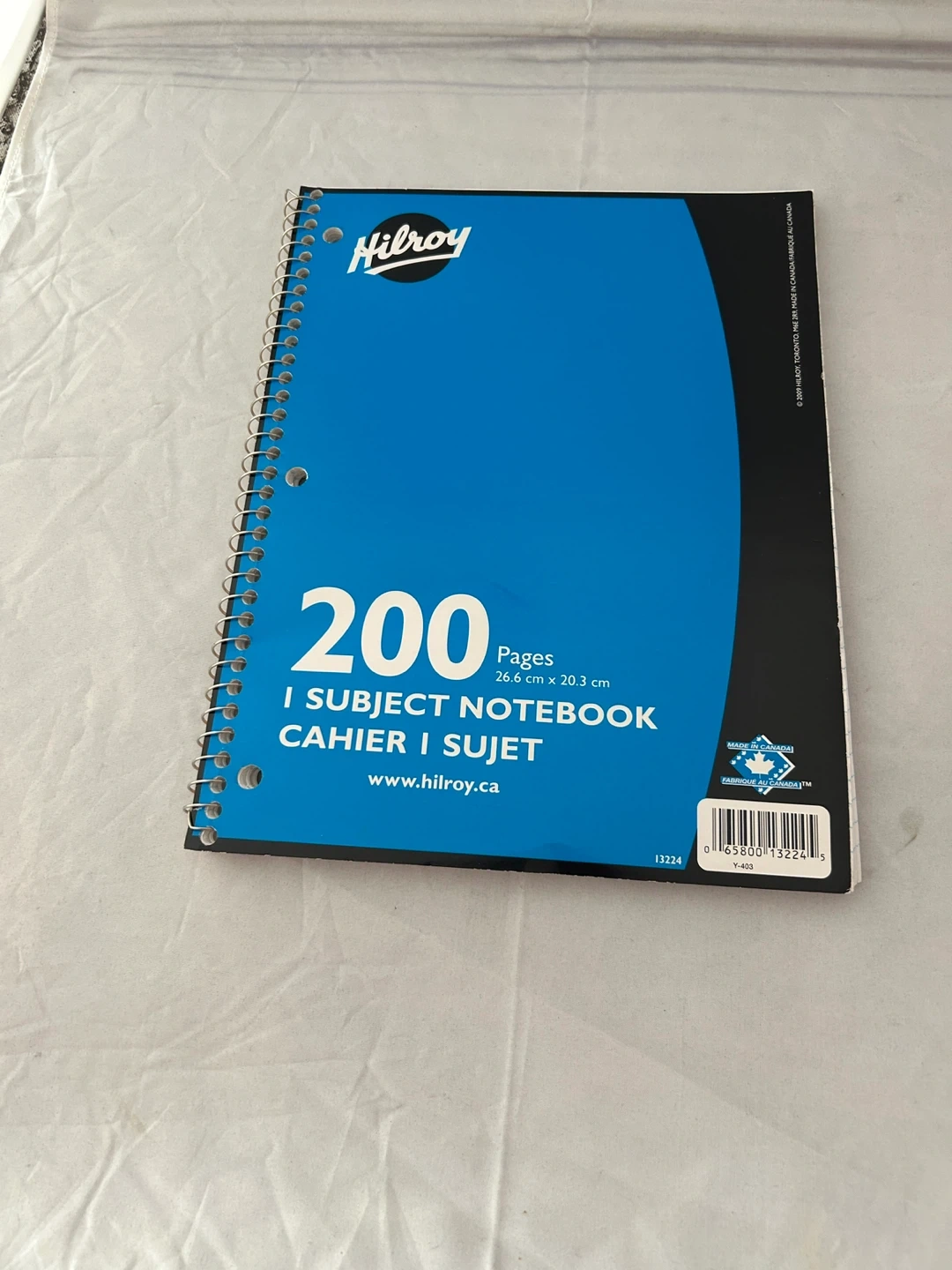 Selling a Hilroy 200-page, 1-subject notebook. It measures 26.6 cm x 20.3 cm and is perfect for school or work.