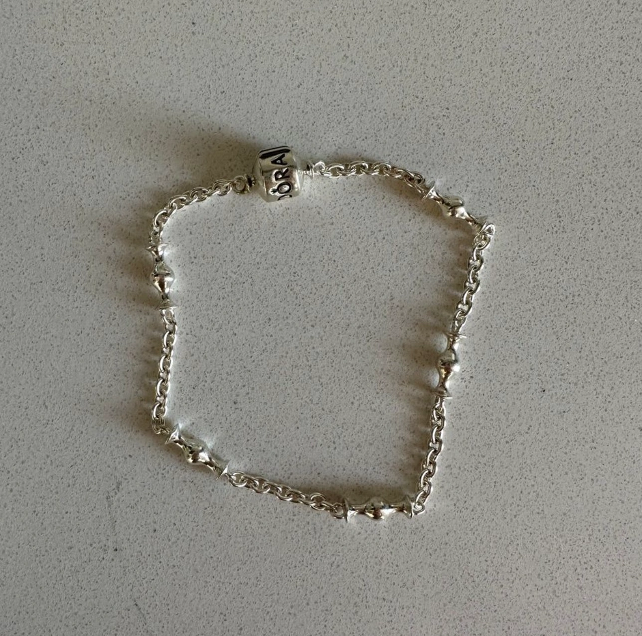 Brand new, never been worn (still in original packaging) retired Pandora five station “clip capture” bracelet. Style the Pandora capture bracelet with up to five new or existing Pandora Clips. Sterling silver. Number 591704.