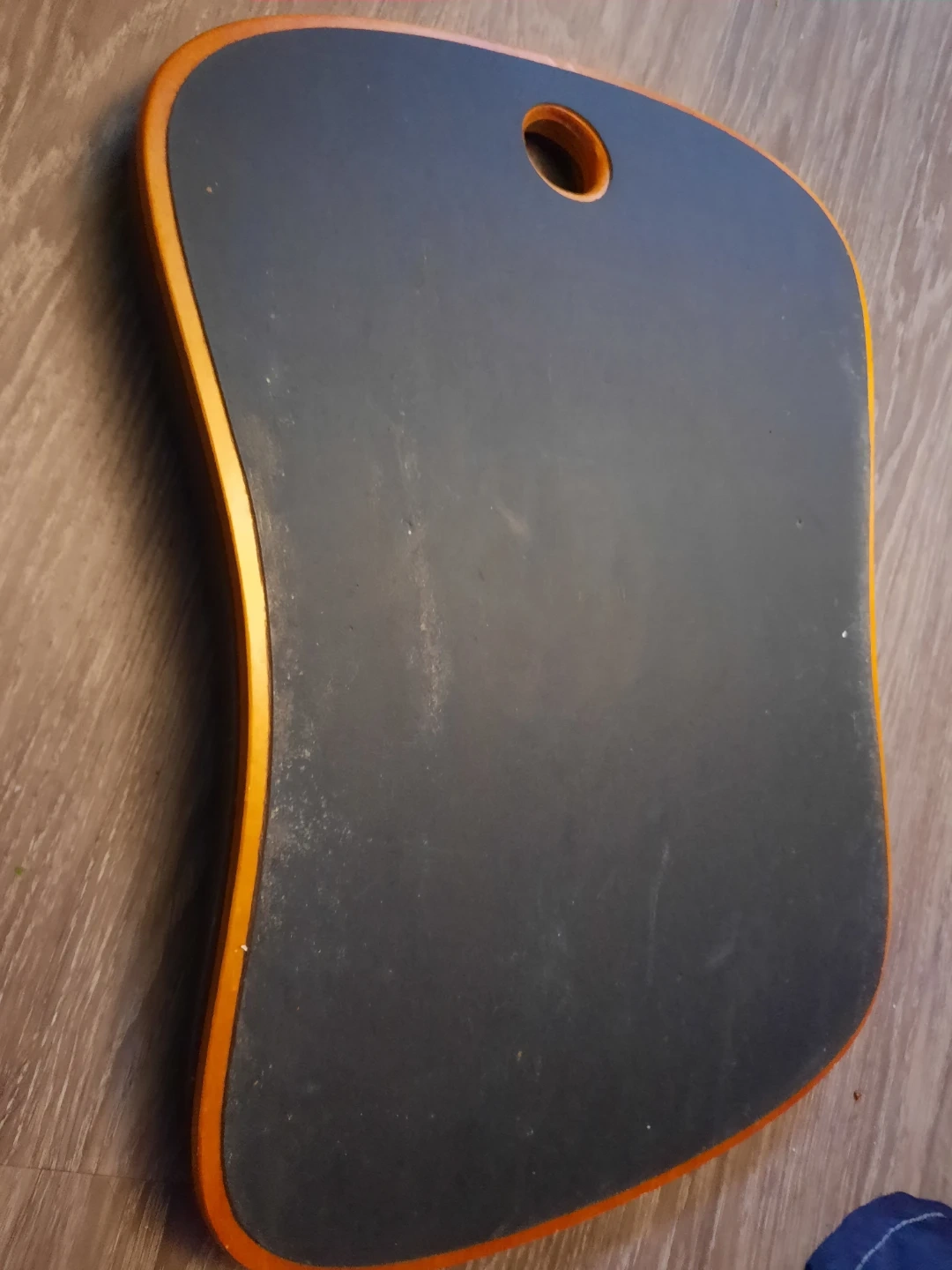 Balance board used for improving core strength, balance, and posture. Non-slip textured surface and ergonomic shape for comfortable use. Great for home workouts, physical therapy, or standing desk use. Durable and lightweight with built-in handle for easy carrying.