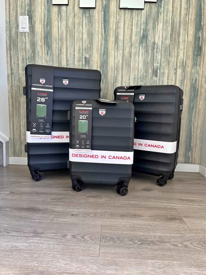 BRAND: Wanderer Luggage Pick up in Panorama Hills NW. $139 for 3 Pc set which included Large Check in 28”, Medium Check in 24” & Small Carry on 20” Total Exterior Dimensions Including Wheels: Large: 29.5” * 19.5” * 11.5” Medium: 25.5 * 17 * 10” Carry on: 21” * 15” * 9” Features: 🔹Quiet 360° Spinner wheels 🔹Built in Combination Lock 🔹Ergonomic Handle 🔹Fully Lined Premium Interior 🔹Sturdy 3 Level Aluminum Trolley 🔹Lightweight & Durable Scratch-proof exterior Body ✅BUY WITH CONFIDENCE✅ 5 Years Limited Warranty by Manufacturer I Will Issue you a receipt which can be used for warranty or claim needs with airline if needed. Prices are FINAL & FIRM (Includes GST) Payment accepted in Cash or transfer