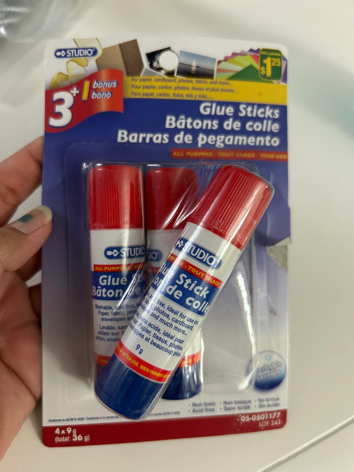 I bought this new set of glue sticks from Dollarama, but I just needed one.