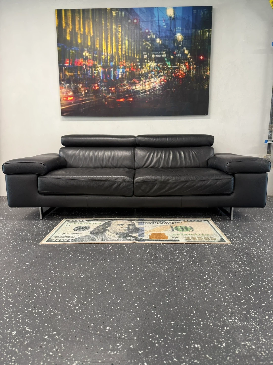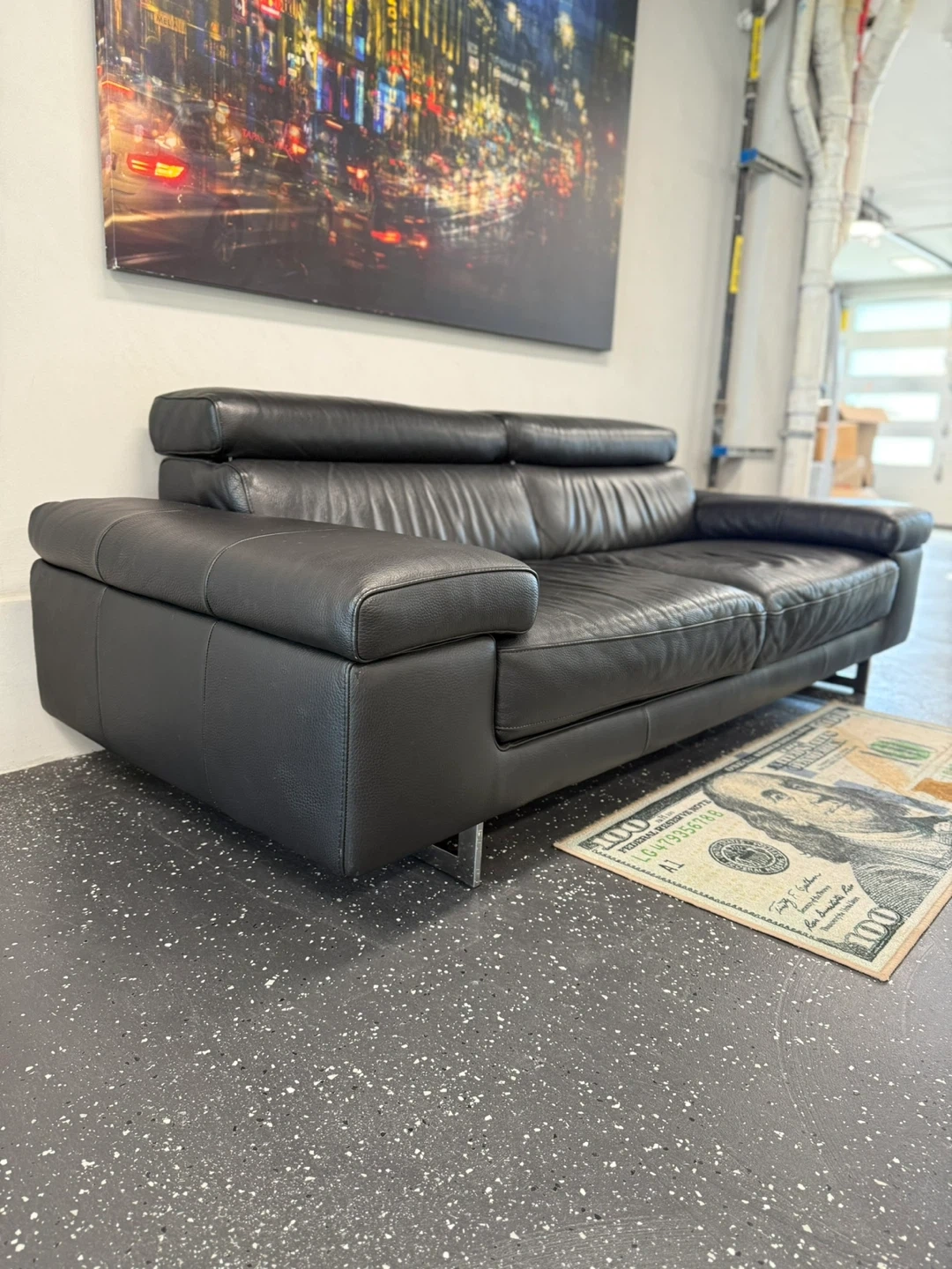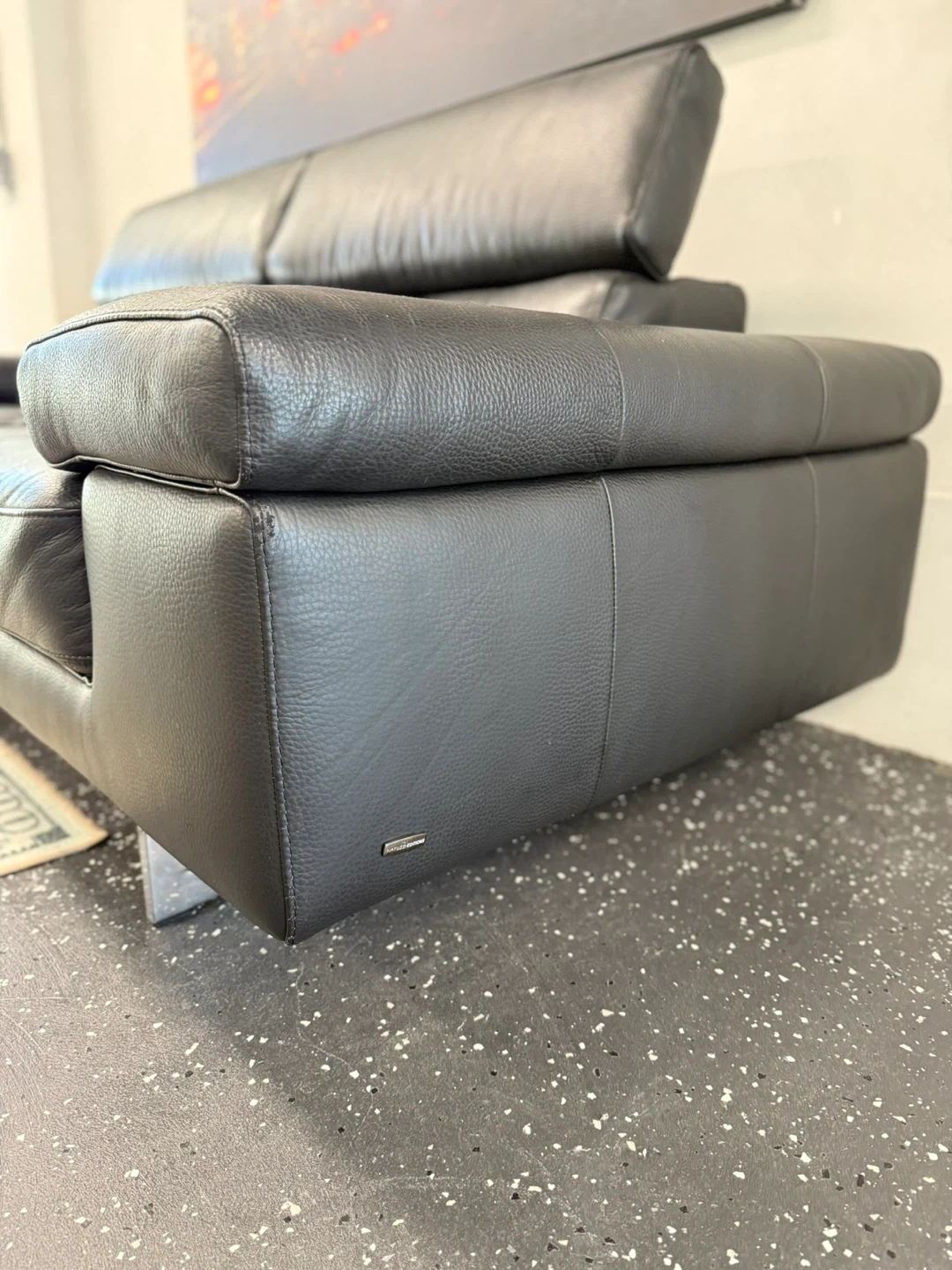 Selling a stylish Natuzzi Editions black leather sofa. This sofa is perfect for any living room and offers both comfort and a modern look. Its sleek design and quality leather make it a great addition to your home!