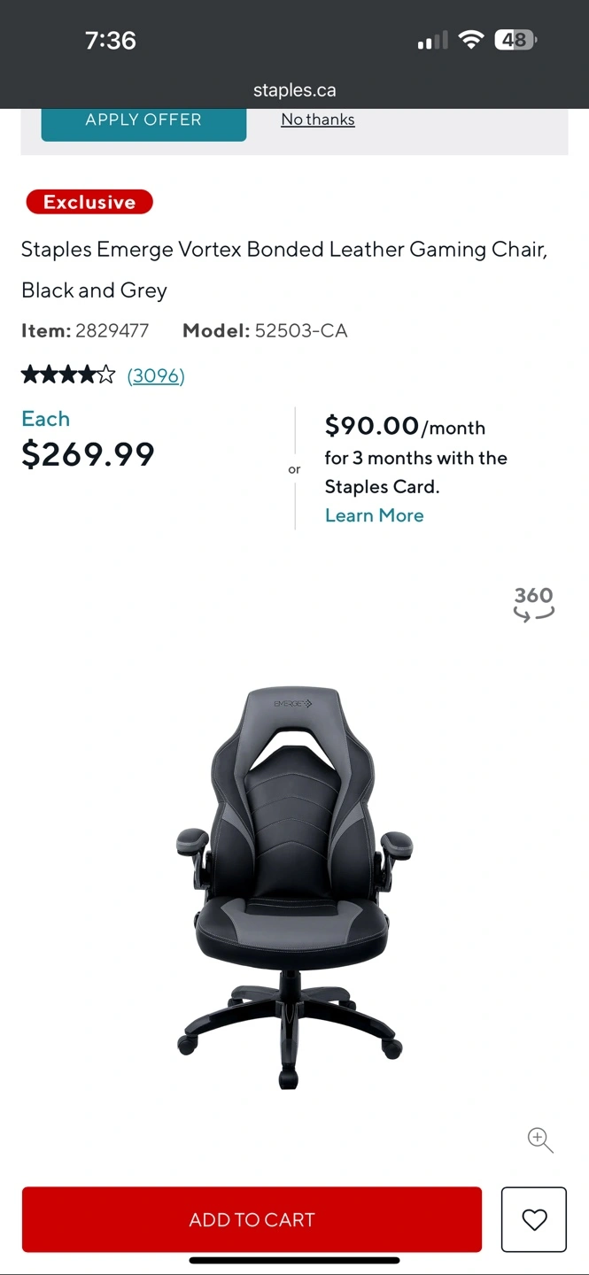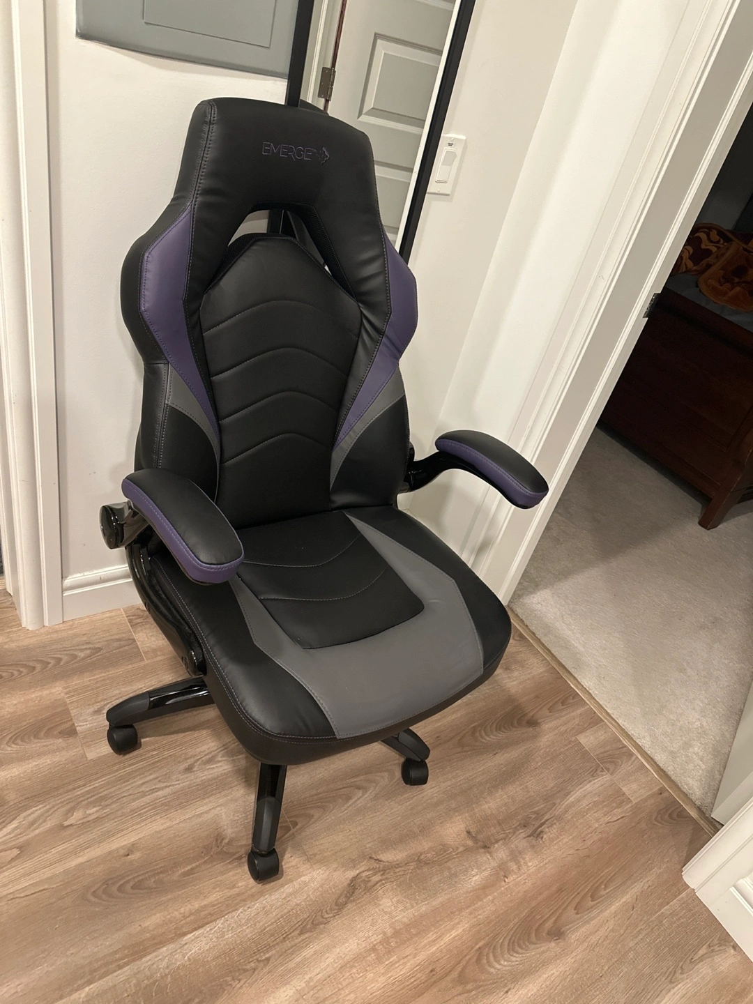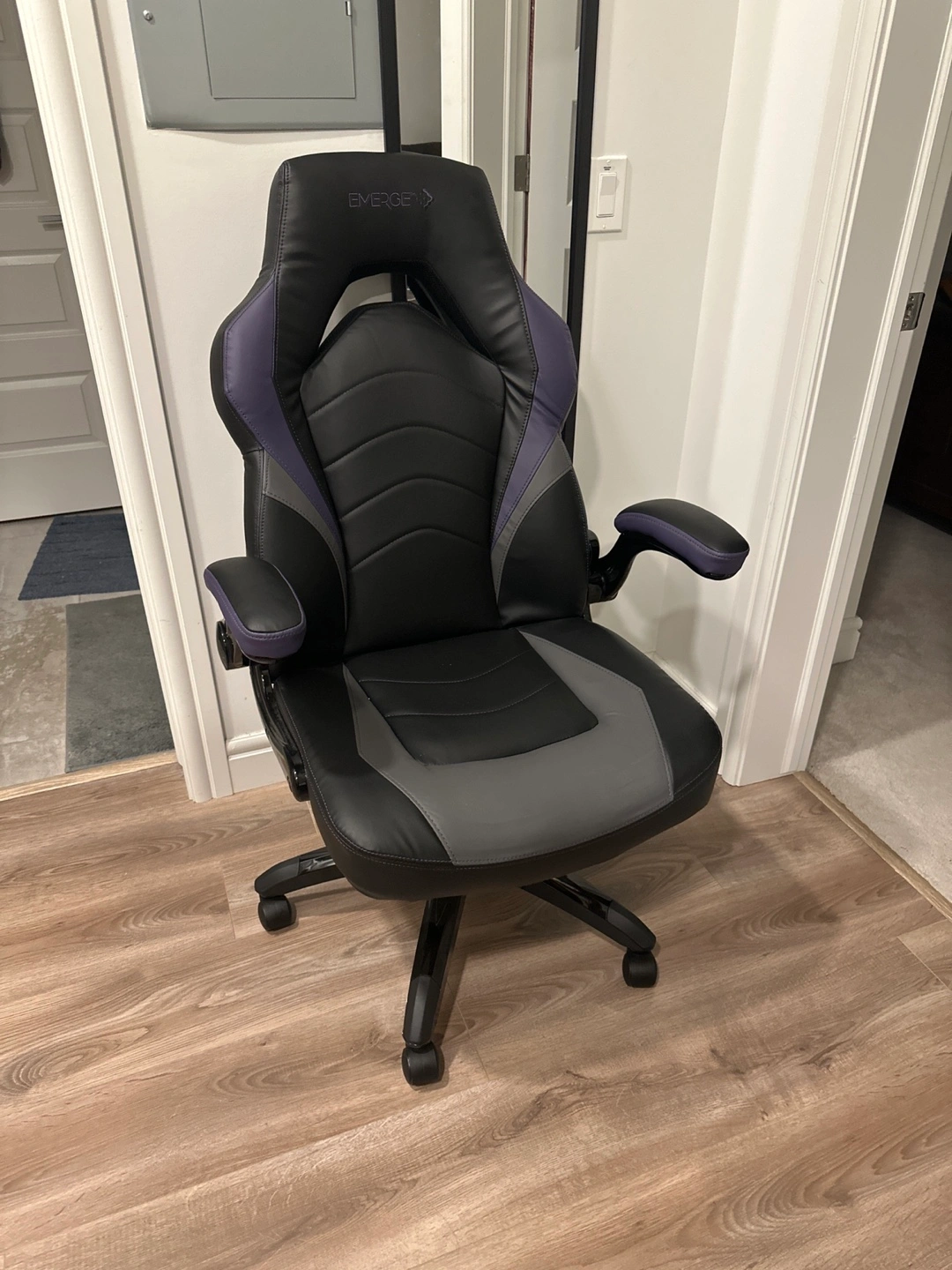 Comfortable gaming chair, black and grey colour scheme. Features armrests and rolling casters. Almost new like condition. Assembled and just sitting there barely used once or twice. Also can deliver for extra $ depends where you lovated