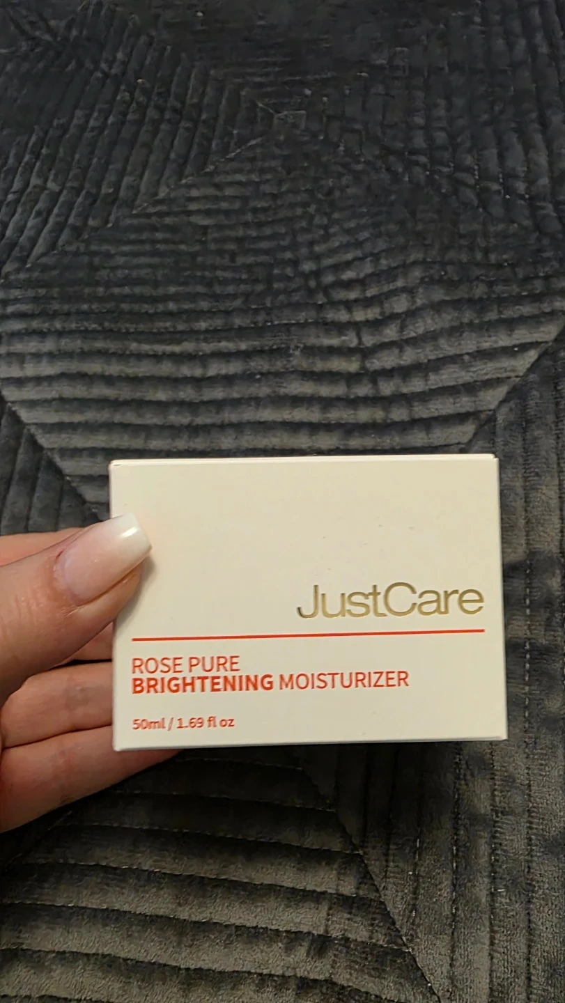 This is JustCare Rose Pure Brightening Moisturizer. It's 50ml, or 1.69 fl oz. This moisturizer is designed to brighten your skin. It comes with its original box.