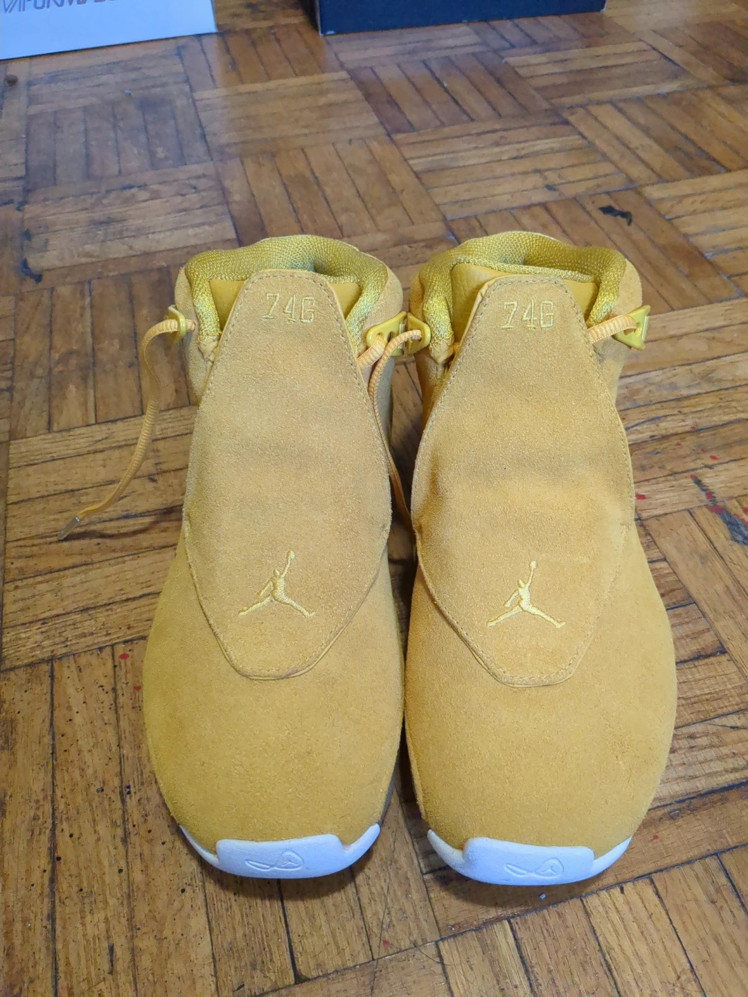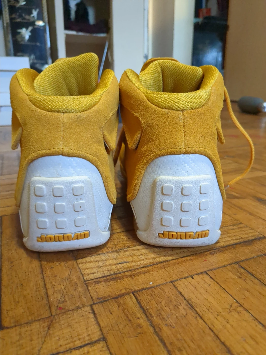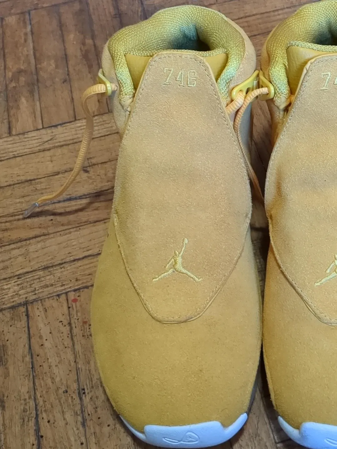 Buy & SellJordan 74G Yellow Suede High Top SneakersJordan 74G Yellow Suede High Top Sneakers$184These are a pair of yellow Jordan 74G high top sneakers. They're made with a suede material. The Jumpman logo is embroidered on the front.ConditionNewSize9.5BrandJordanWHERE TO MEETpharmacyView MapSELLERverifiedKassidyPharmacy Place681 review1 chats·1 favorites·45 viewsSEND CHAT TO SELLERHi Kassidy! I’m interested in your listing.Hi Kassidy! I’m interested in your listing.Get the Karrot app to chatSign In to chat