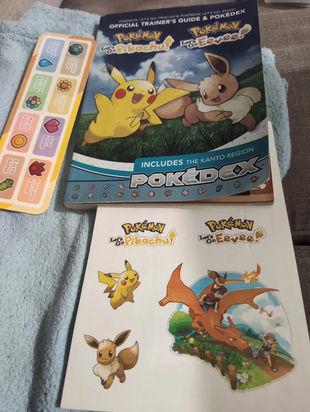 This official trainer's guide and Pokedex covers the Kanto region for Pokemon Let's Go Pikachu and Pokemon Let's Go Eevee. It includes details on Pokemon, stats, and gameplay elements. Also includes stickers (minus 2), bookmark, Kanto map & type match up chart. I also have the pokeball plus and travel case as well.