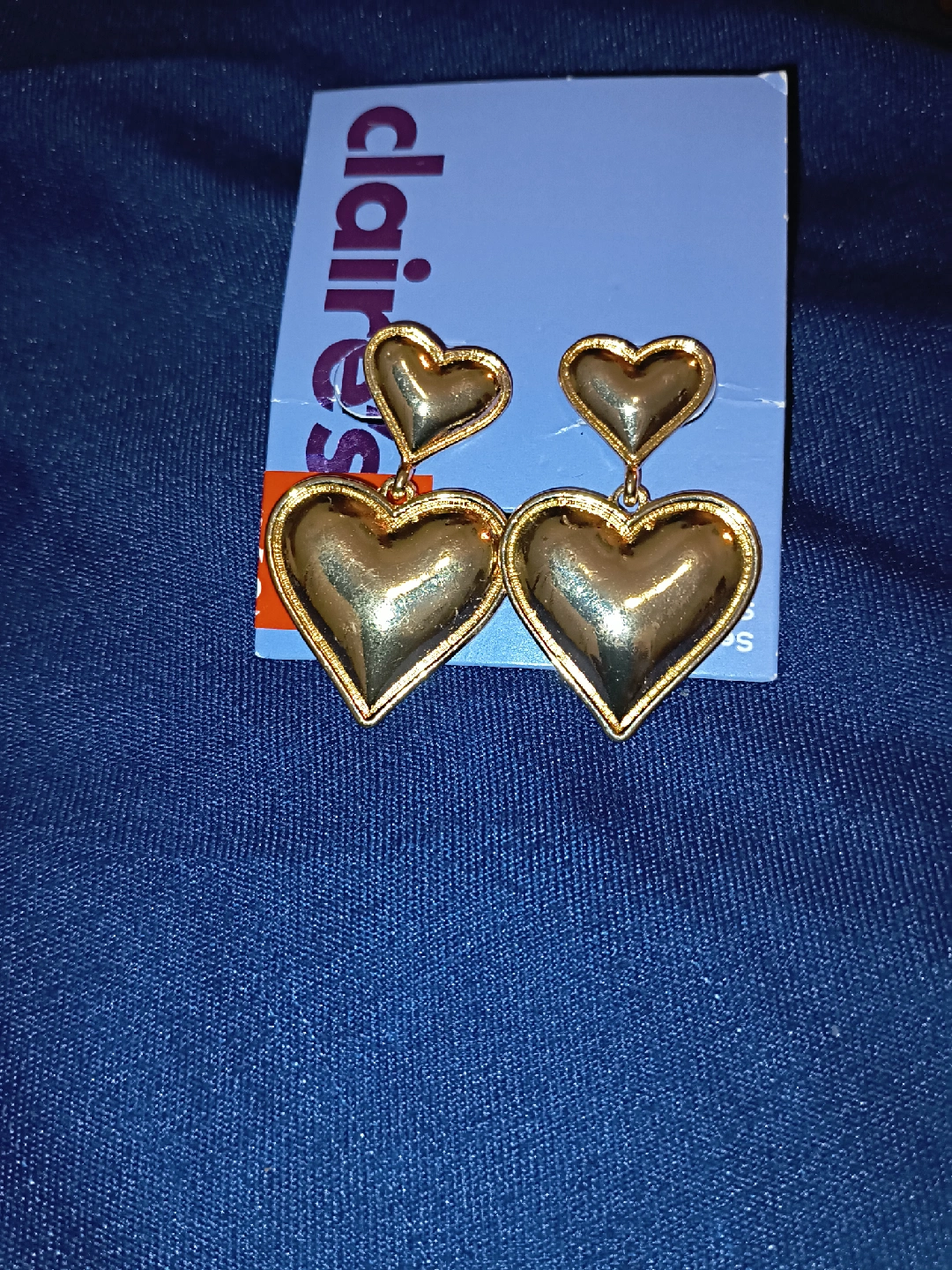 These are a pair of gold heart drop earrings from Claire's! They're in great condition and would be a lovely addition to any jewelry collection.