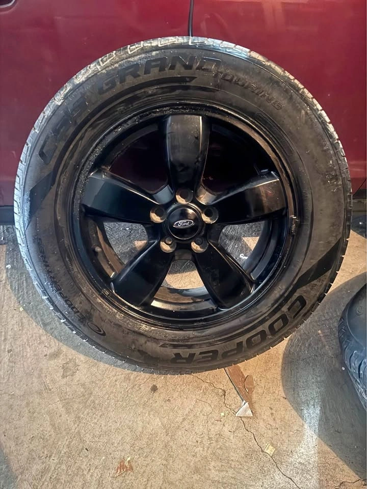 Set of 4 original Ford Escape black alloy rims in great condition. Mounted on Cooper all-season tires sized 225/65R17. Tires have over 75 percent tread remaining, so they should easily last 2–3 more seasons. DOT is recent, so no concerns about tire age. Rims are straight with no cracks and minimal scratches, and overall look great on the vehicle. Perfect direct fit for Ford Escape and may fit other vehicles with the same bolt pattern.