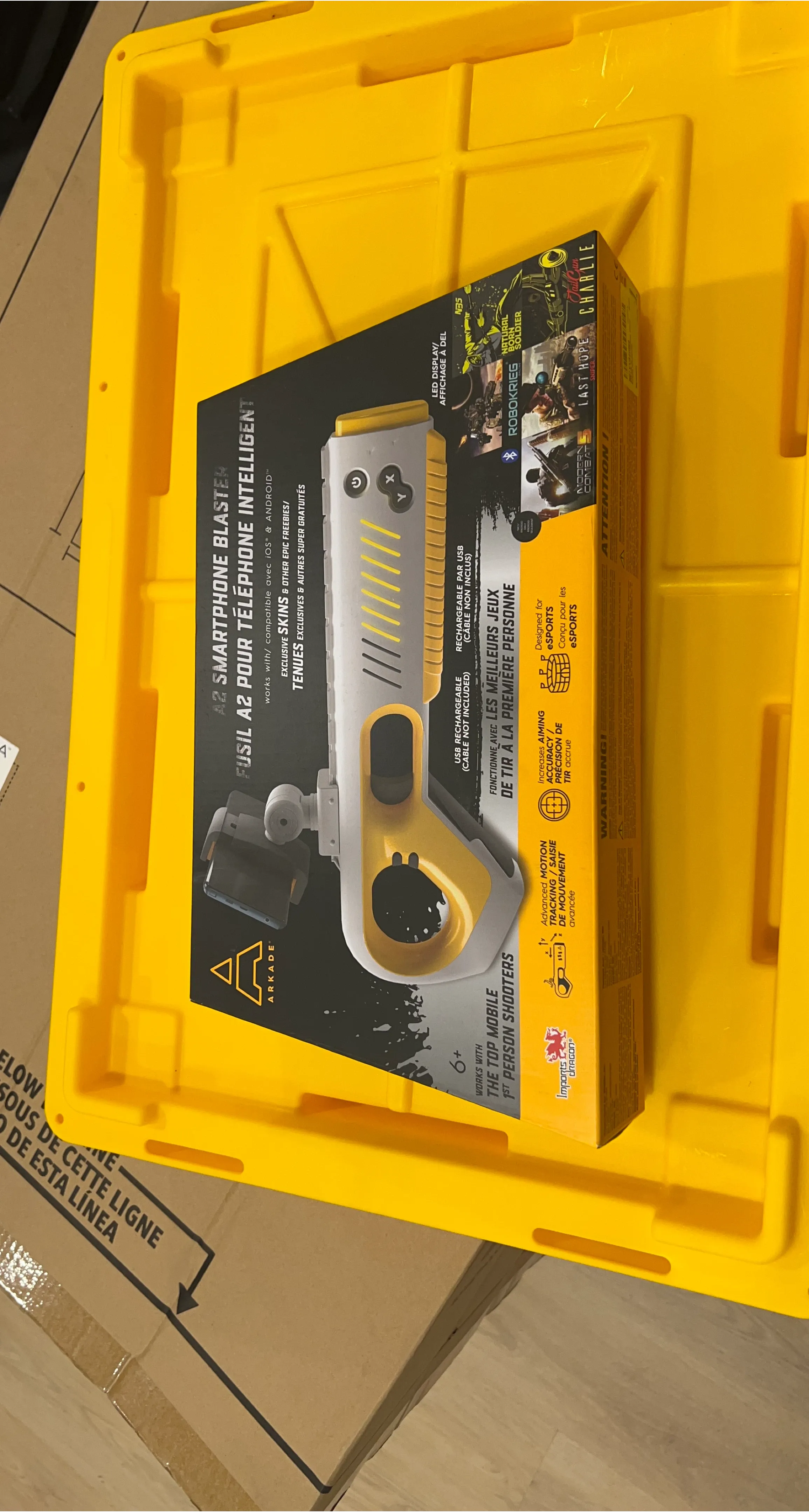 Selling a new Arkade A2 Smartphone Blaster! It's still in its original packaging and ready for some action. Works with both iOS and Android devices and includes exclusive skins and extra super gravities. Perfect for mobile first-person shooters for ages 6+!