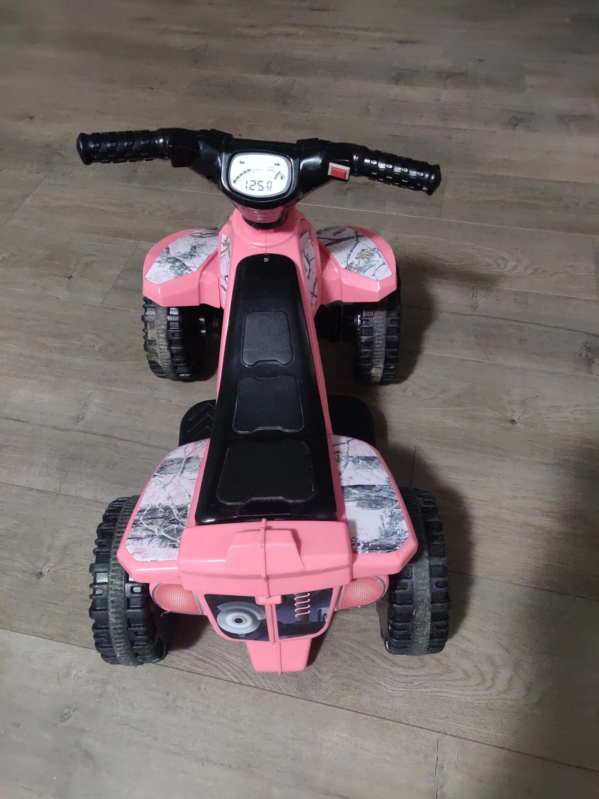 Selling a cute pink ATV ride-on toy! It's in good used condition and ready for a new little adventurer. Perfect for indoor or outdoor fun!