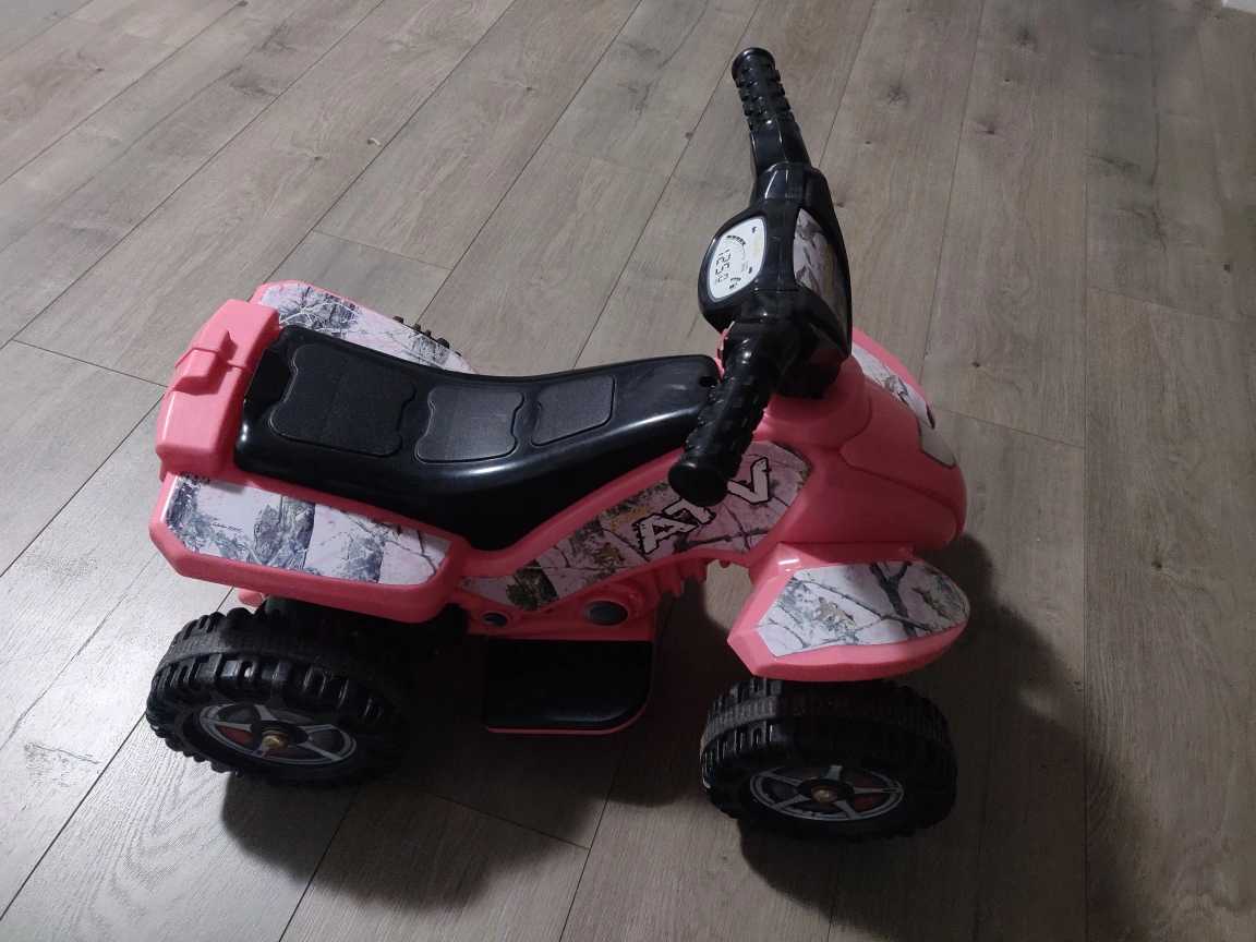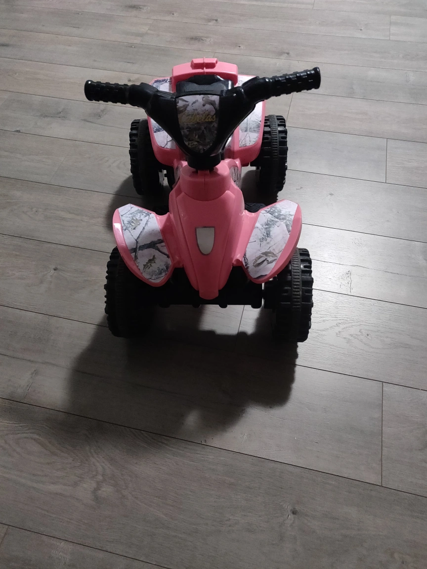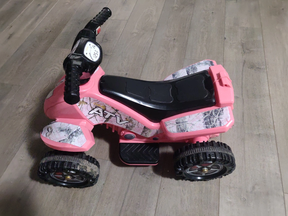 Selling a cute pink ATV ride-on toy! It's in good used condition and ready for a new little adventurer. Perfect for indoor or outdoor fun!