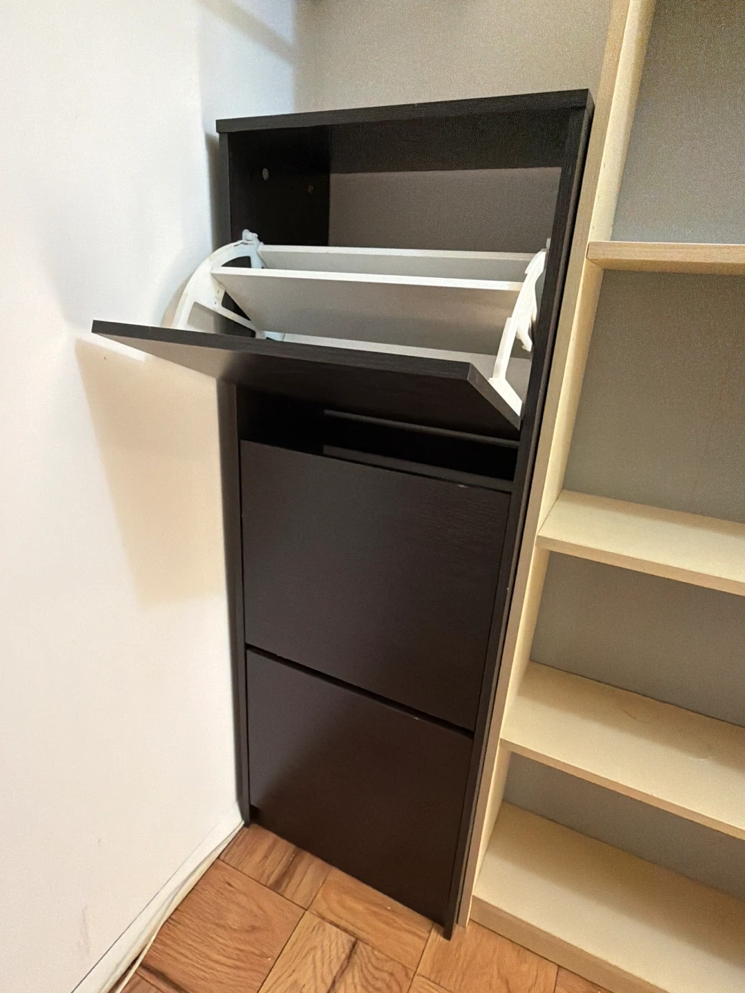 Buy & SellBlack Shoe Cabinet DrawersBlack Shoe Cabinet Drawers$10This is a dark brown shoe cabinet with two flip-down drawers. It's perfect for organizing footwear in narrow spaces.ConditionOkayWHERE TO MEETCity Place at the PromenadeView MapSELLERKiKimEdgewater907 reviews1 chats·0 favorites·28 viewsSEND CHAT TO SELLERHi KiKim! I’m interested in your listing.Hi KiKim! I’m interested in your listing.Get the Karrot app to chatSign In to chat