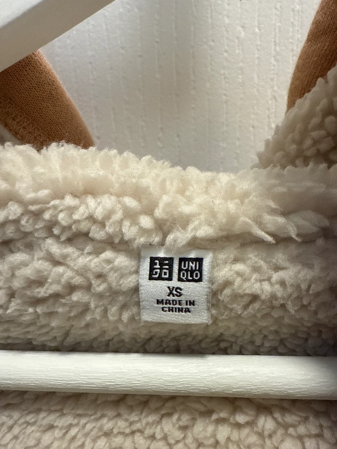 Cozy up in this Uniqlo hoodie! It's an extra small (XS) and features a soft sherpa lining to keep you warm. The outer colour is a lovely beige/light brown. Perfect for those chilly days!