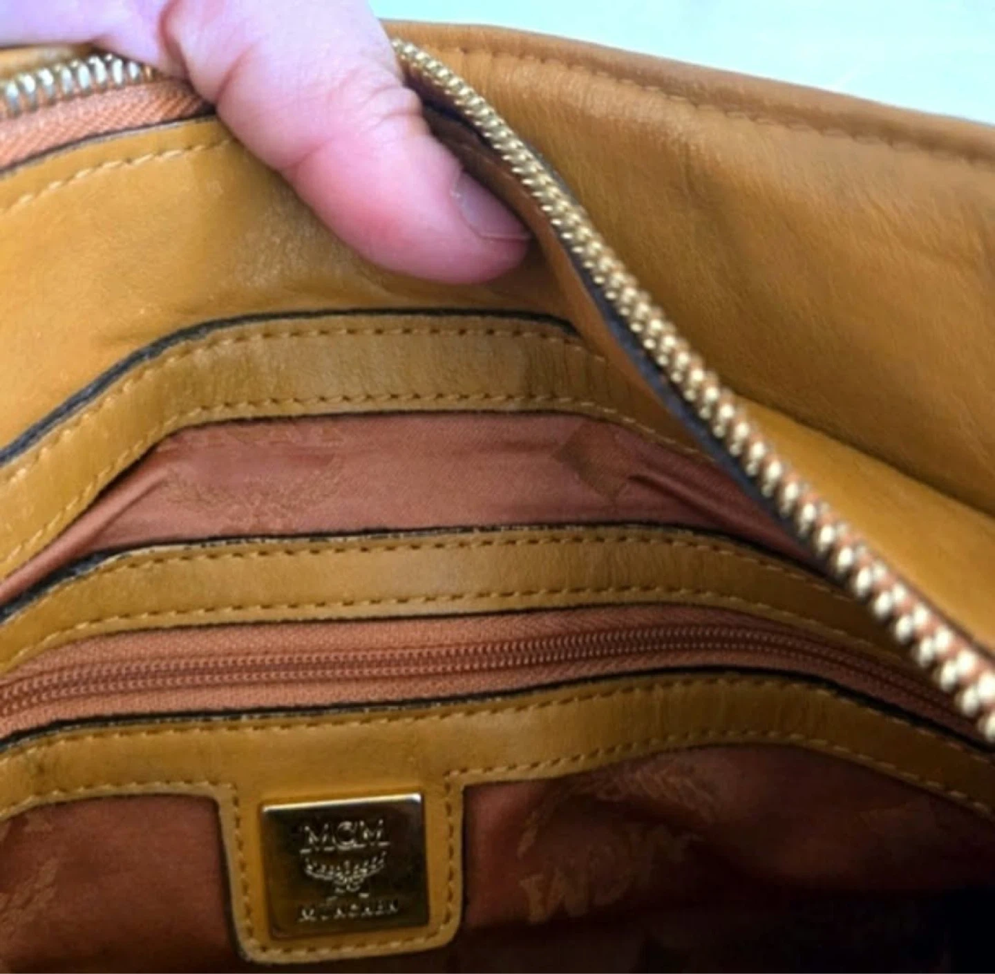MCM tote bag in classic Visetos print. Leather trim and handles. Includes adjustable shoulder strap. Interior is lined with MCM logo pattern.