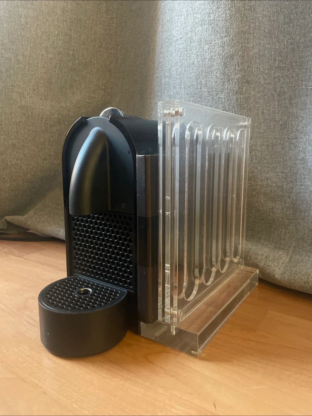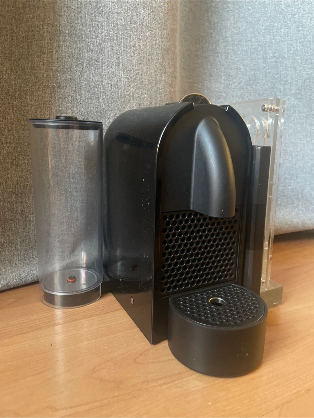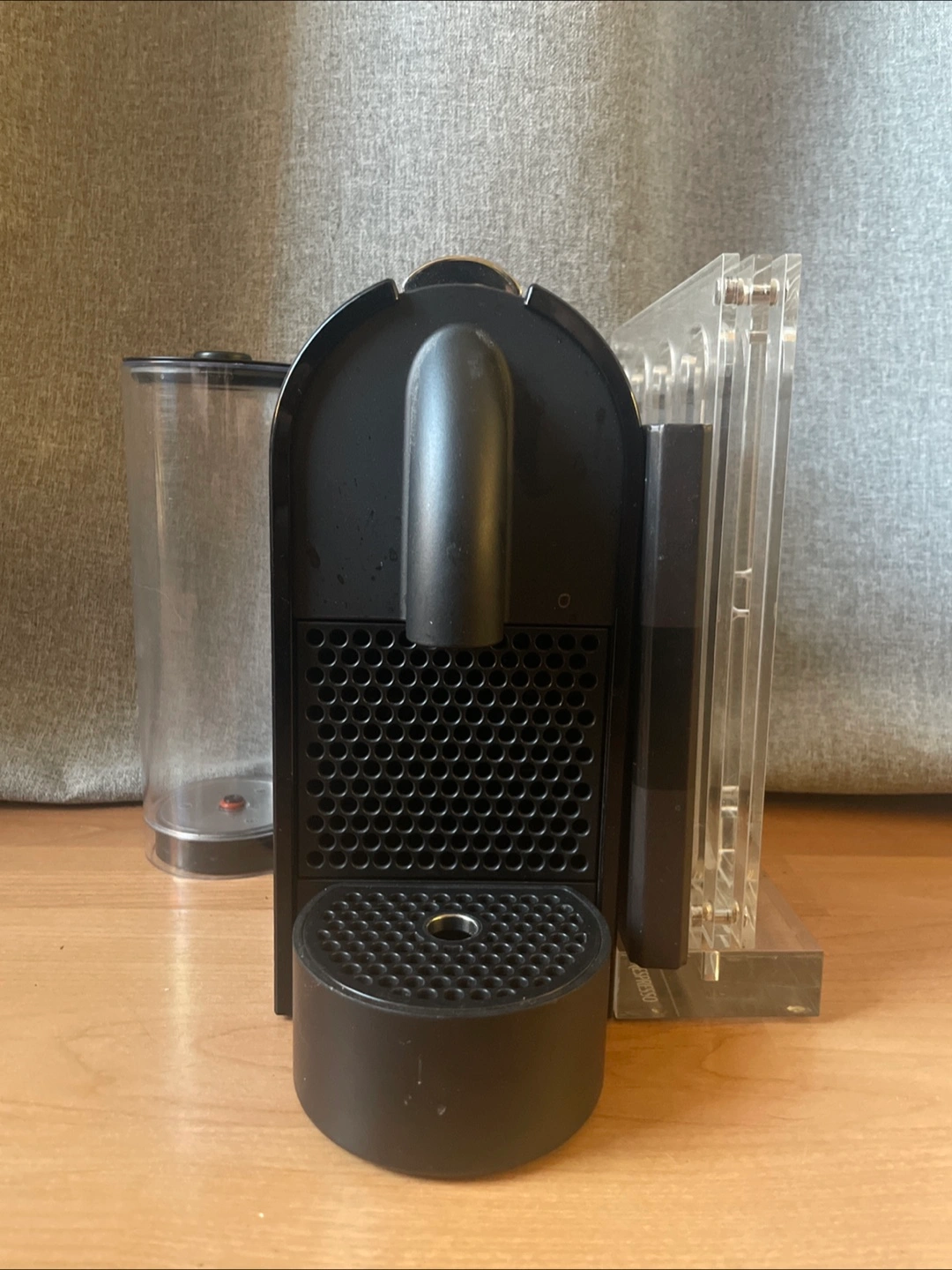 Selling a Nespresso coffee machine in black! It's in great shape and ready to make some delicious coffee. This compact machine delivers a rich, flavourful espresso with ease. - from ai