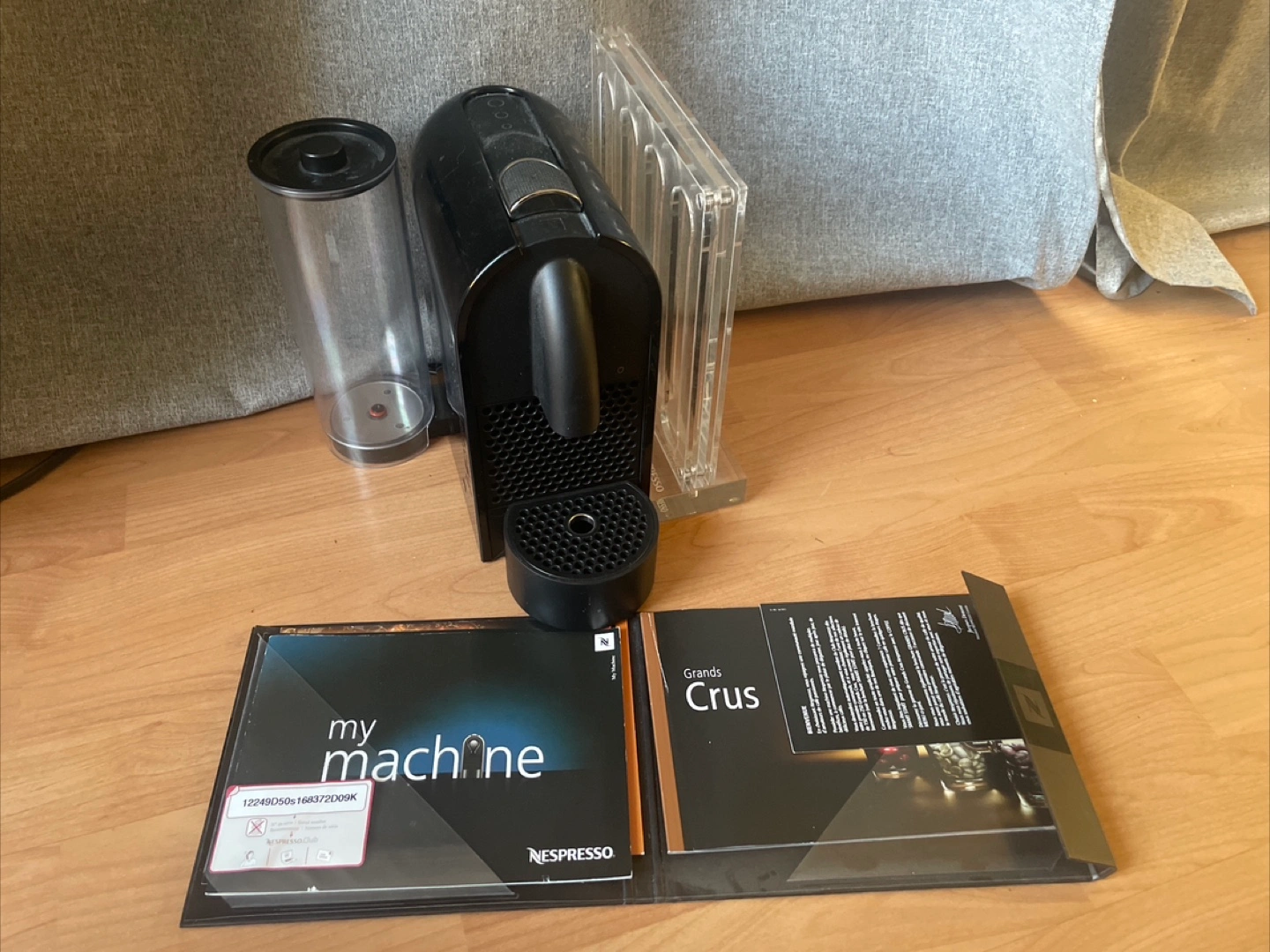 Machine works great. Comes with everything you need (other than pods), includes original manual in a folder and coffee pod holder shelf.