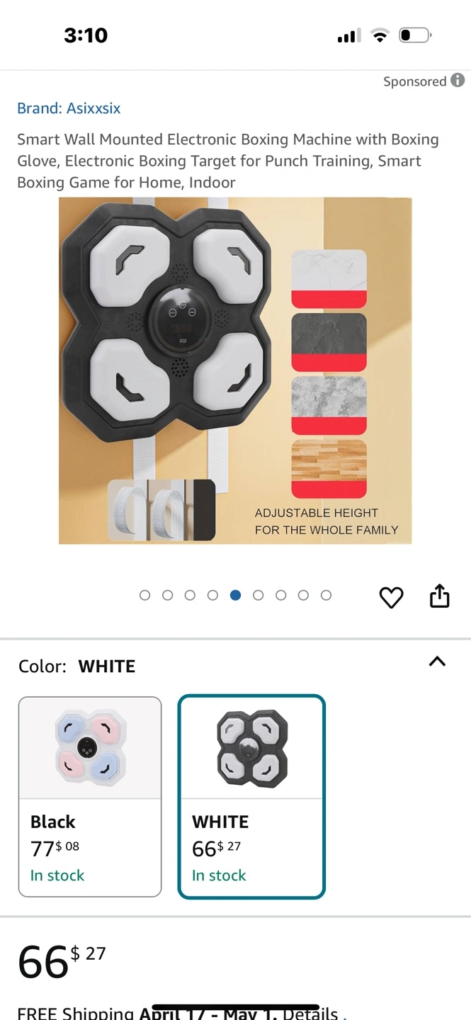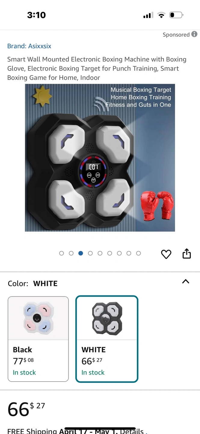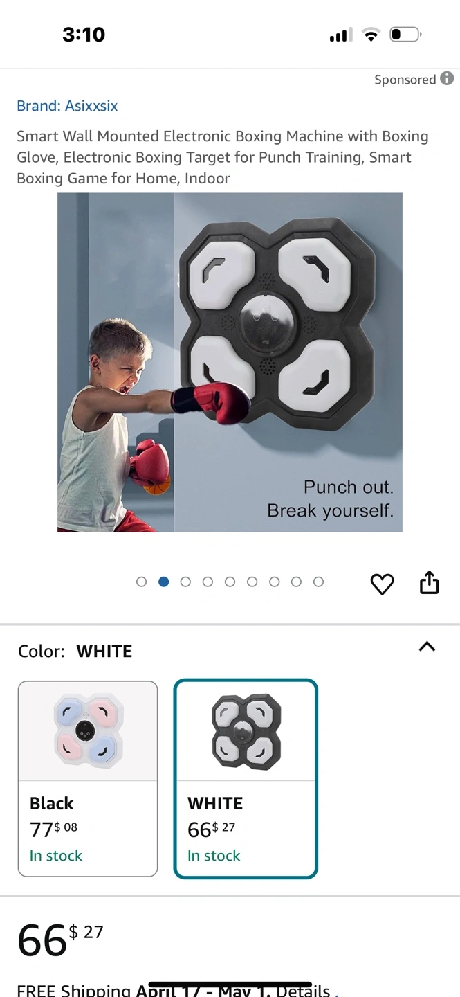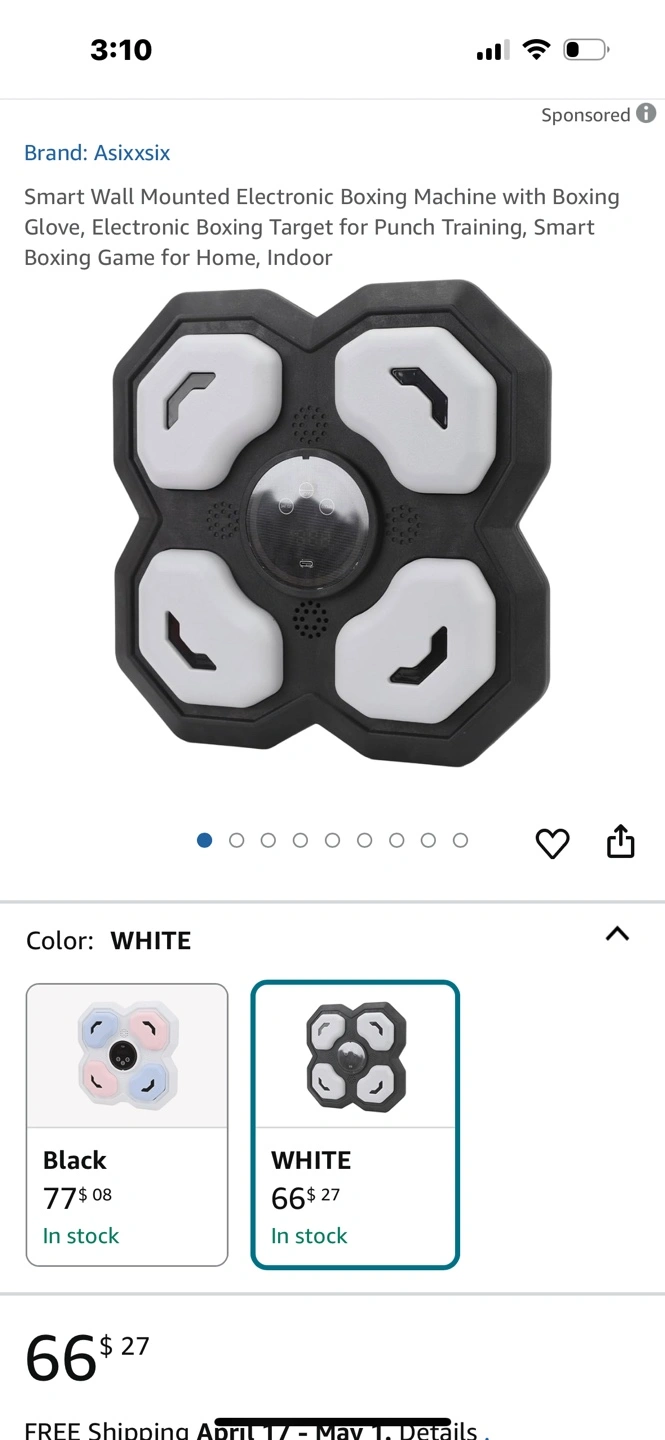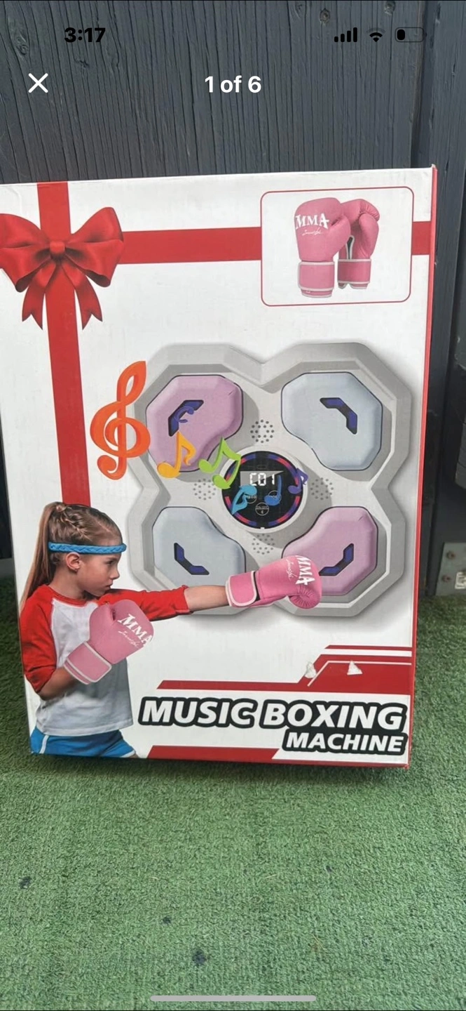 Electronic boxing machine. Includes wall-mounted target, boxing gloves, and smart boxing game. Great for home or indoor use. Punching game with lights and sounds.