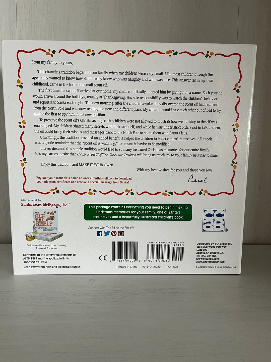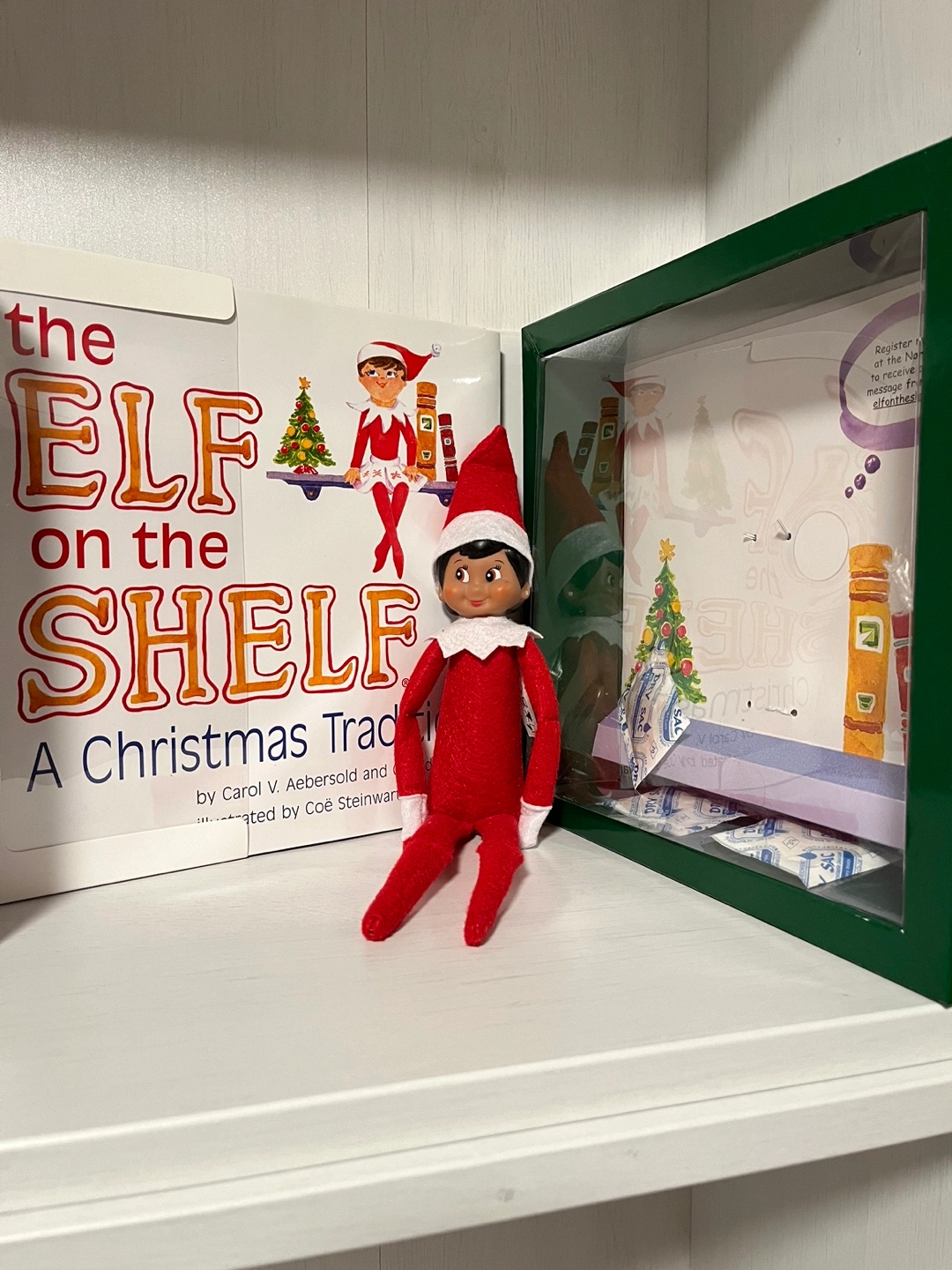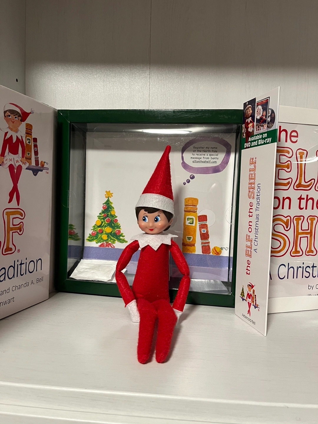 Each Elf on the Shelf Elf comes in the Traditional Box, with shelf and Includes a storybook in the front cover.