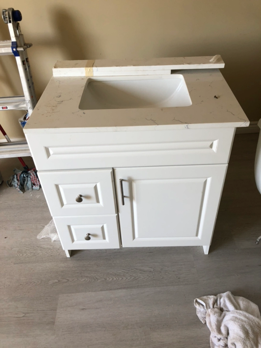 31” width X 22” depth. Bought this for condo reno but plumbing didn’t line up. Brand new. Located in Mississauga. Hurontario and Burnamthorpe