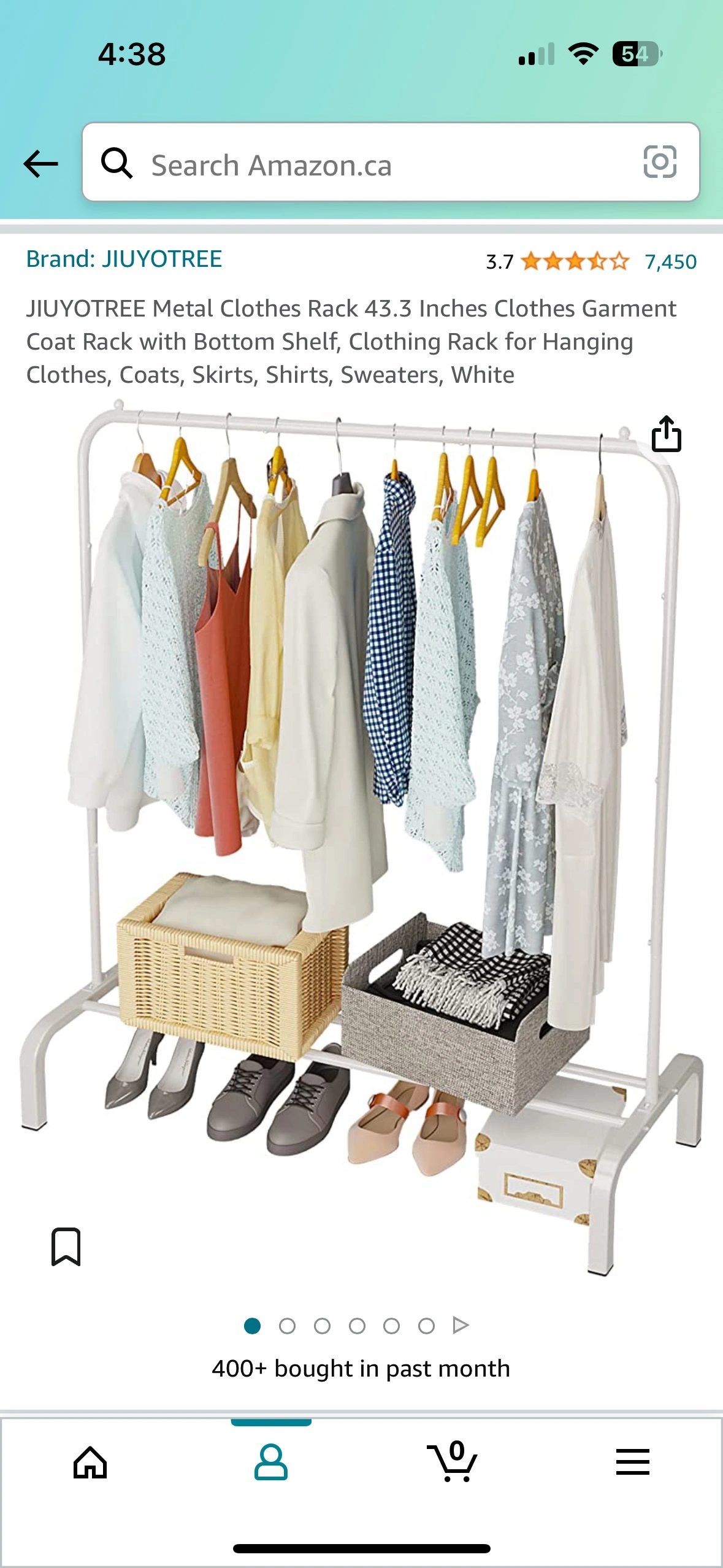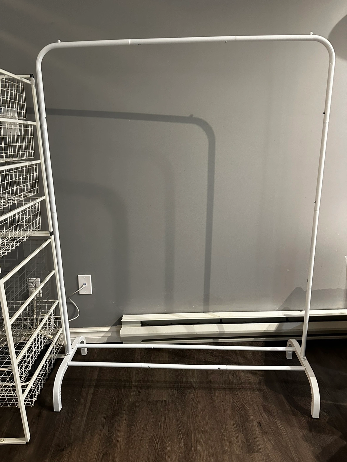 JIUYOTREE Metal Clothes Rack 43.3 Inches Clothes Garment Coat Rack with Bottom Shelf, Clothing Rack for Hanging Clothes, Coats, Skirts, Shirts, Sweaters, White https://a.co/d/cVRPGoQ