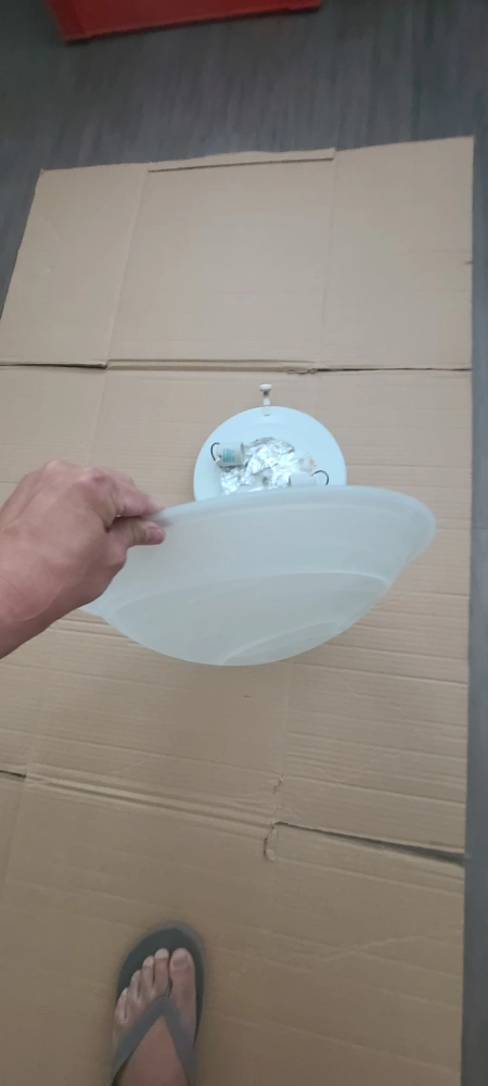Here's a ceiling light fixture looking for a new home! It's in great shape and ready to brighten up any room. Perfect for adding a touch of simple elegance to your space. 15.5 inches