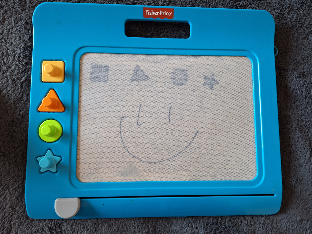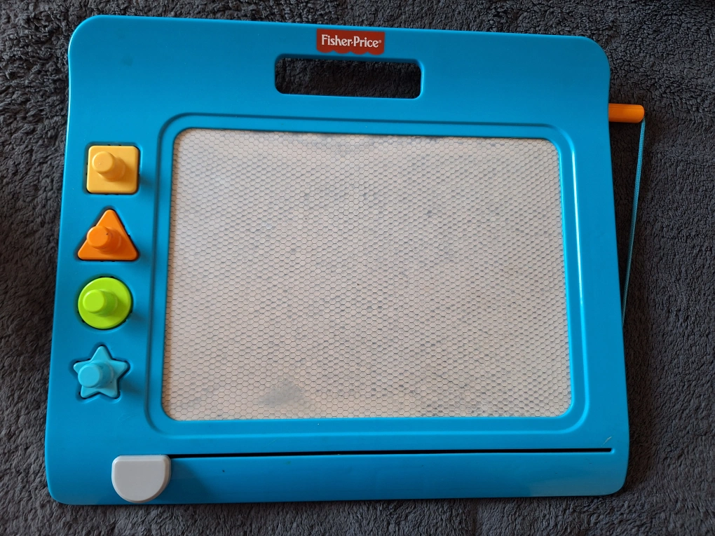 527Still works, stamps and pen. Erase by moving the bar at the bottom. Carrying handle. Great for toddlers. Pick up Keele and Lawrence or can meet at Royal York and Eglinton or another spot depending on location