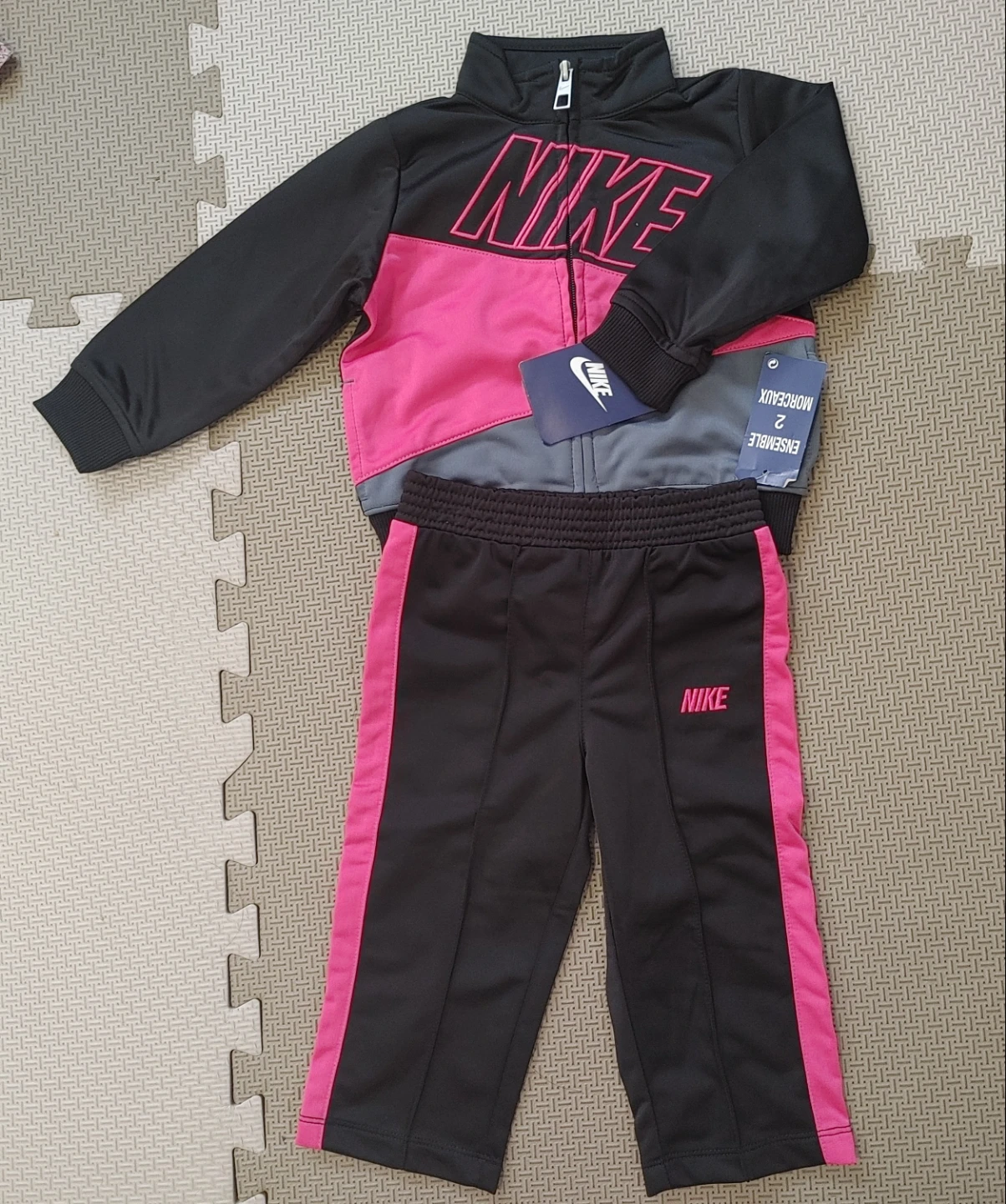 - A Nike tracksuit in black and pink, perfect for active little ones. 18M $15 sold