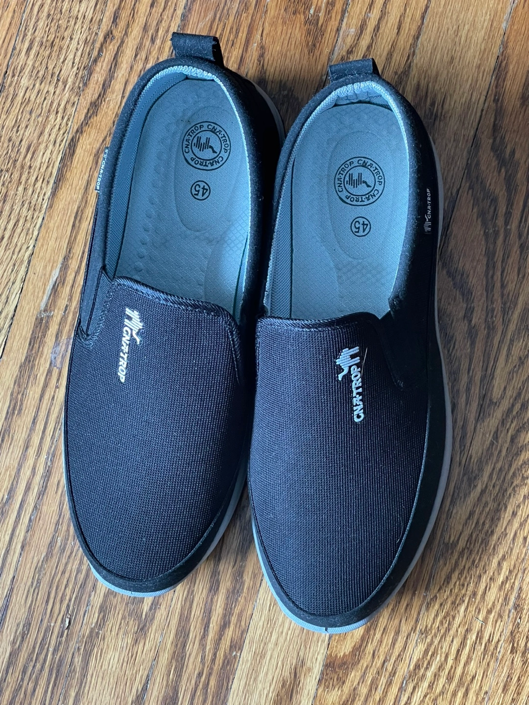 Features a slip-on design. White detailing. Number 45 on the insole and sole. Perfect for a relaxing stroll.