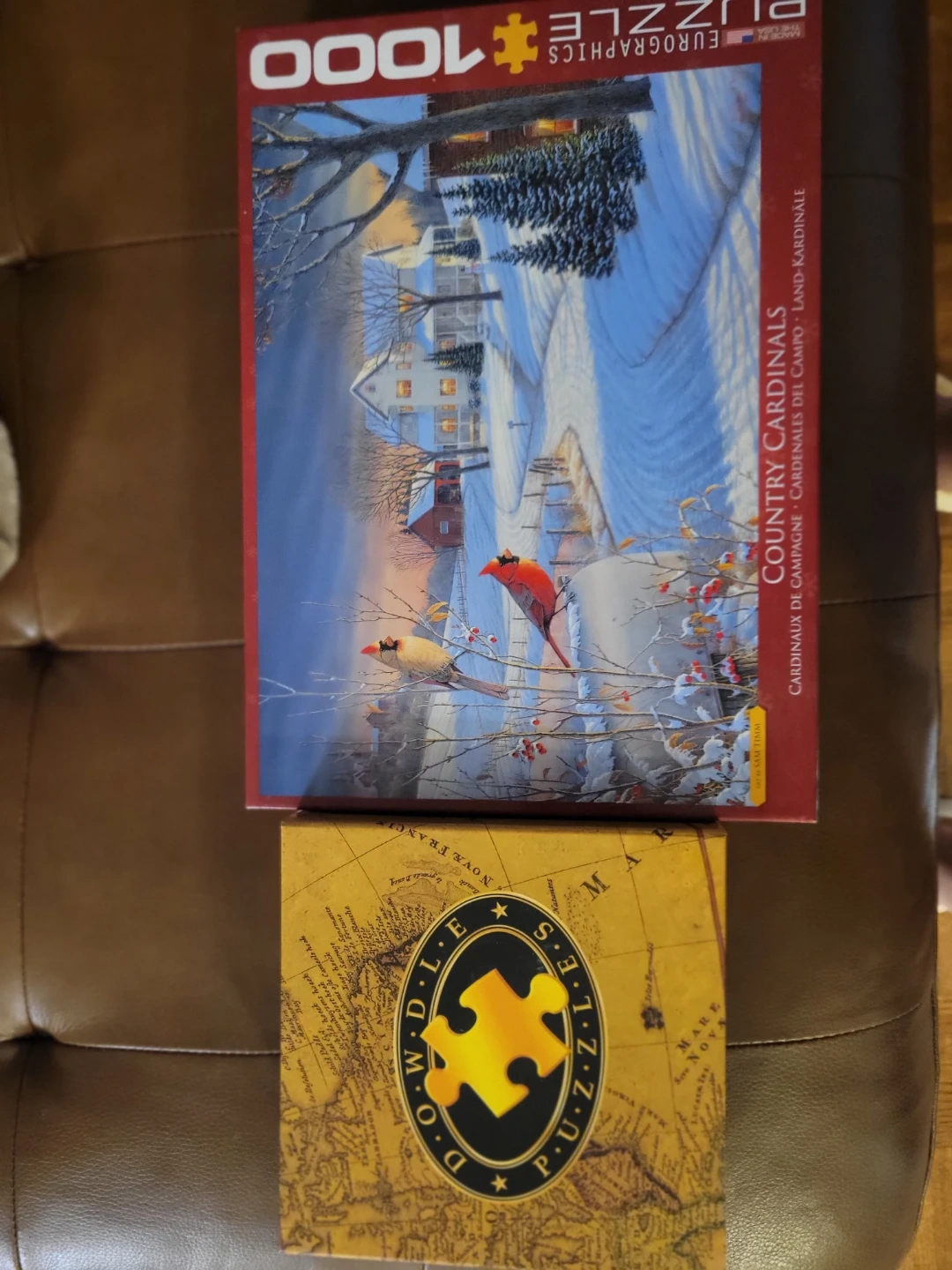 Weston Rutherford pickup This is a 1000-piece puzzle by Eurographics featuring the 'Country Cardinals' scene. It's a beautiful winter landscape with cardinals. Dowdle Puzzles is also included. This puzzle is great for puzzle enthusiasts of all ages!