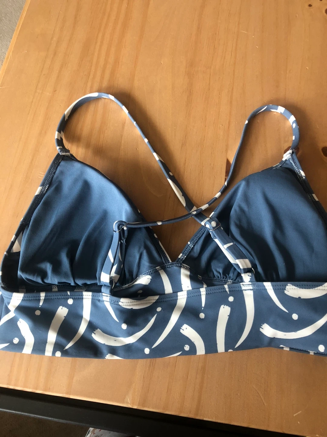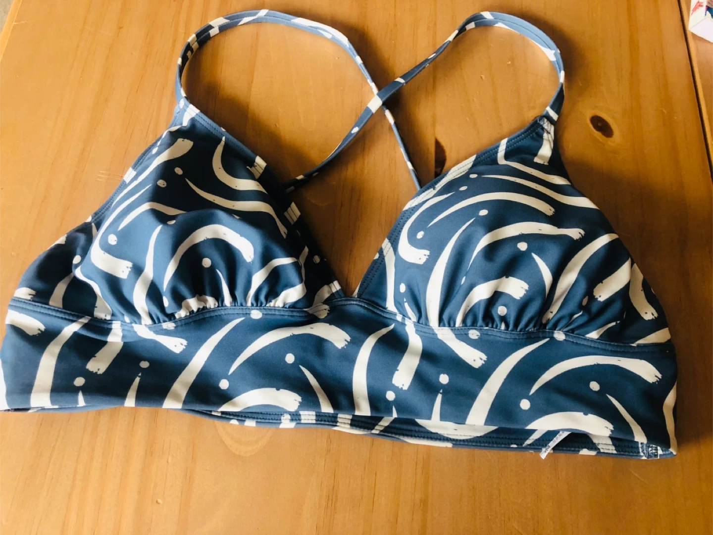 ✨🎉ONLY $5!!!🌊🪸🎊 NEW Blue bikini top with white abstract pattern. ( was washed and NEVER EVEN WORN!)