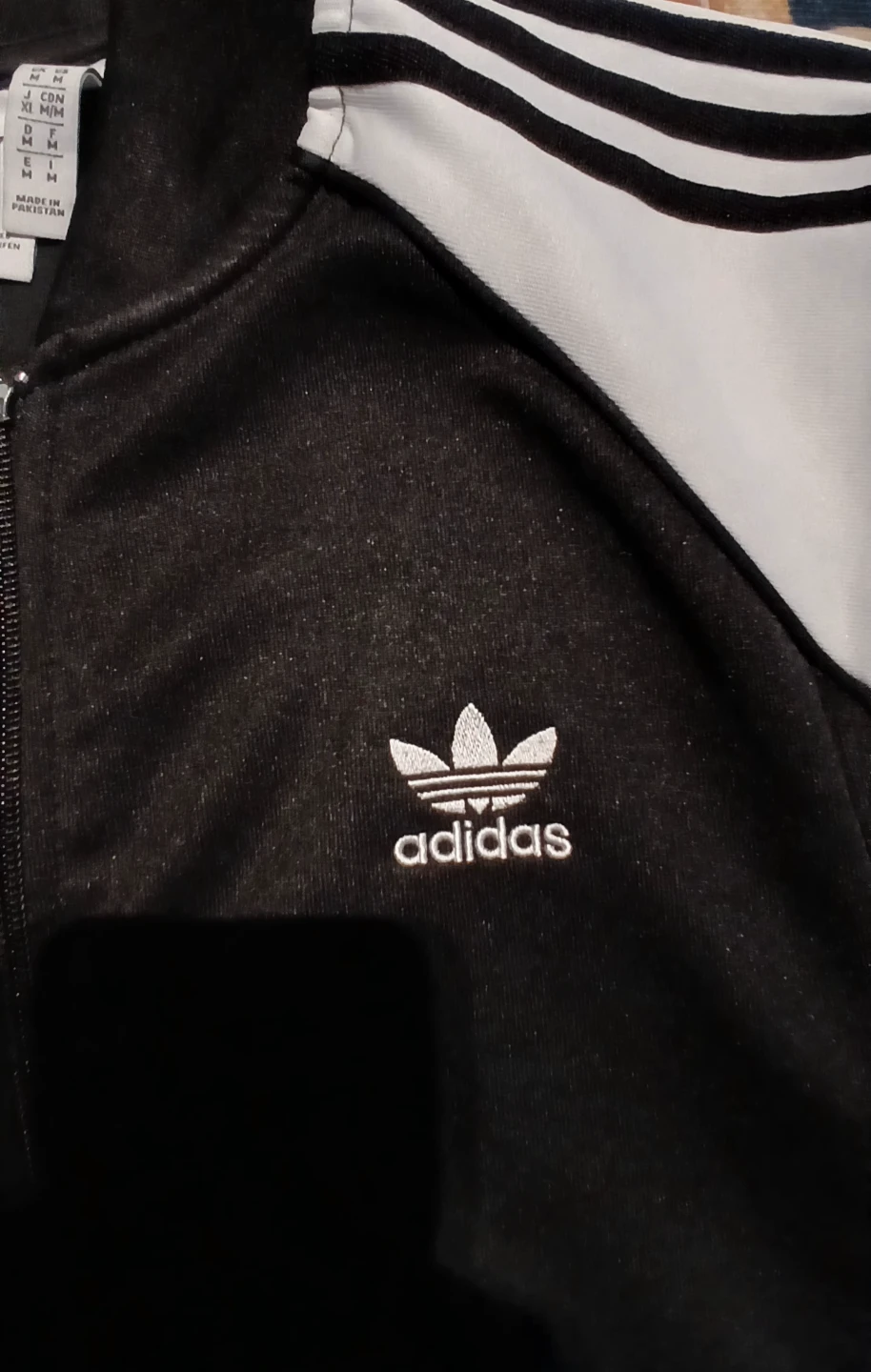 Manteau Adidas noir et blanc pour homme. Taille M. Parfait pour le sport ou un style décontracté. Fait au Pakistan.