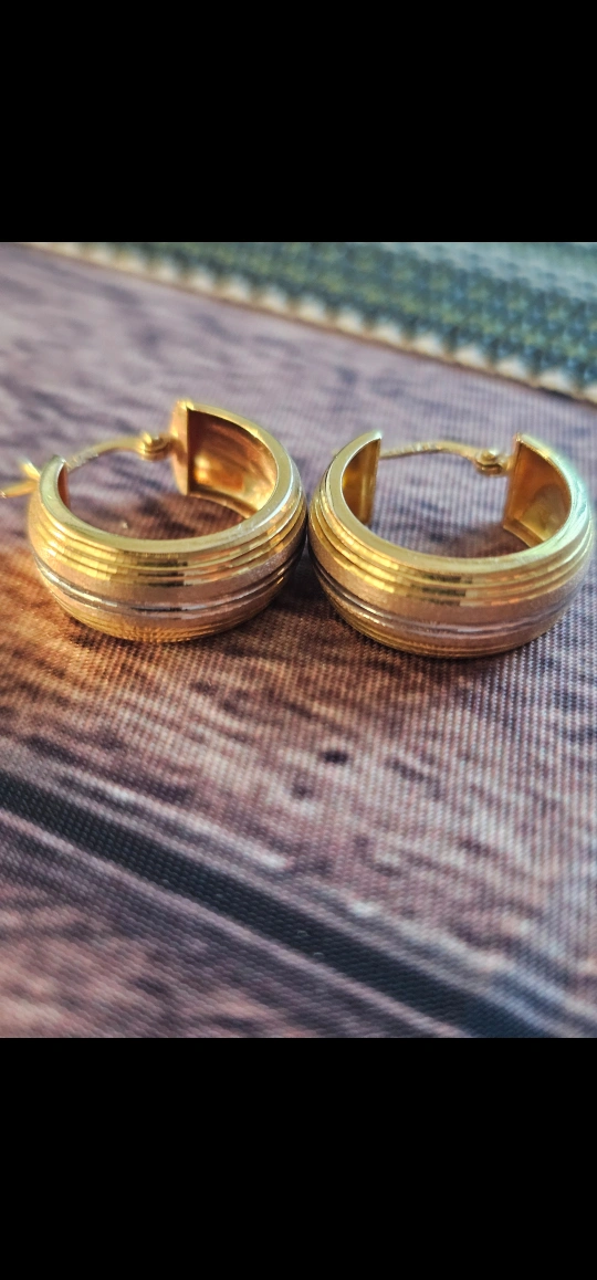 Selling a pair of 14K gold hoop earrings. They weigh 3.62g and are about 1 inch in diameter. They are in great condition!