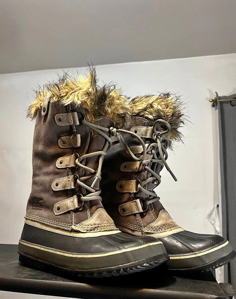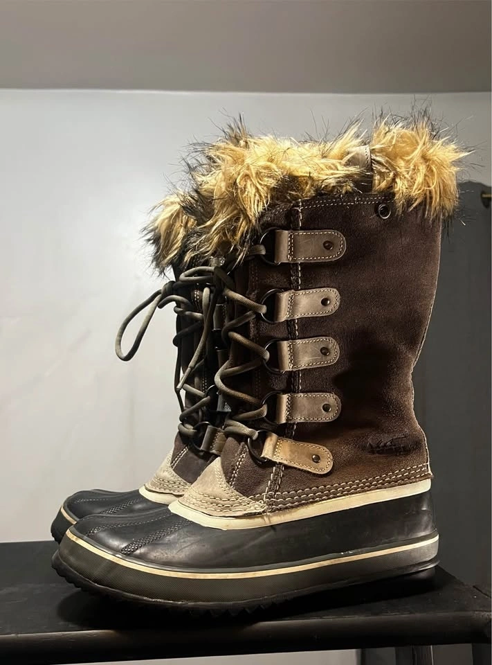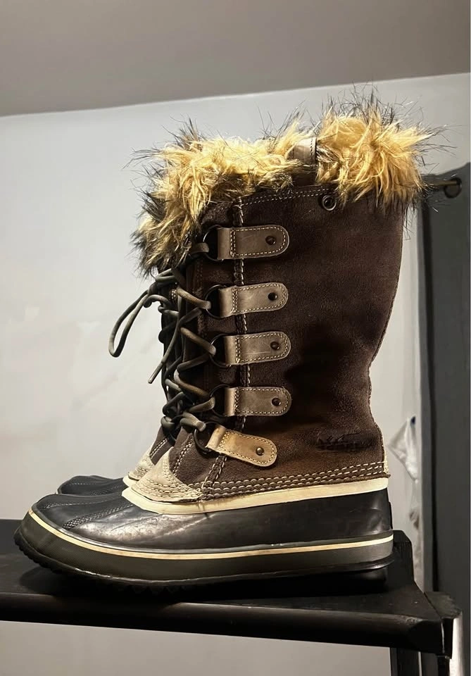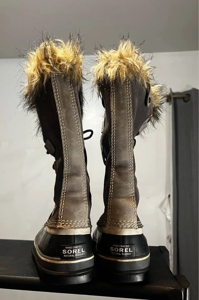 Sorel Joan of Arctic Lace Up Boot. Suede, faux fur, waterproof. Gray and black. Women’s size 8. Very good condition, like new, used twice. Pickup or meetup in Queens or Manhattan. Cash only please. Hablo español.