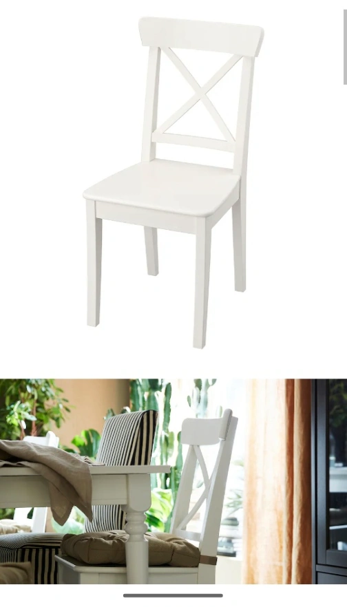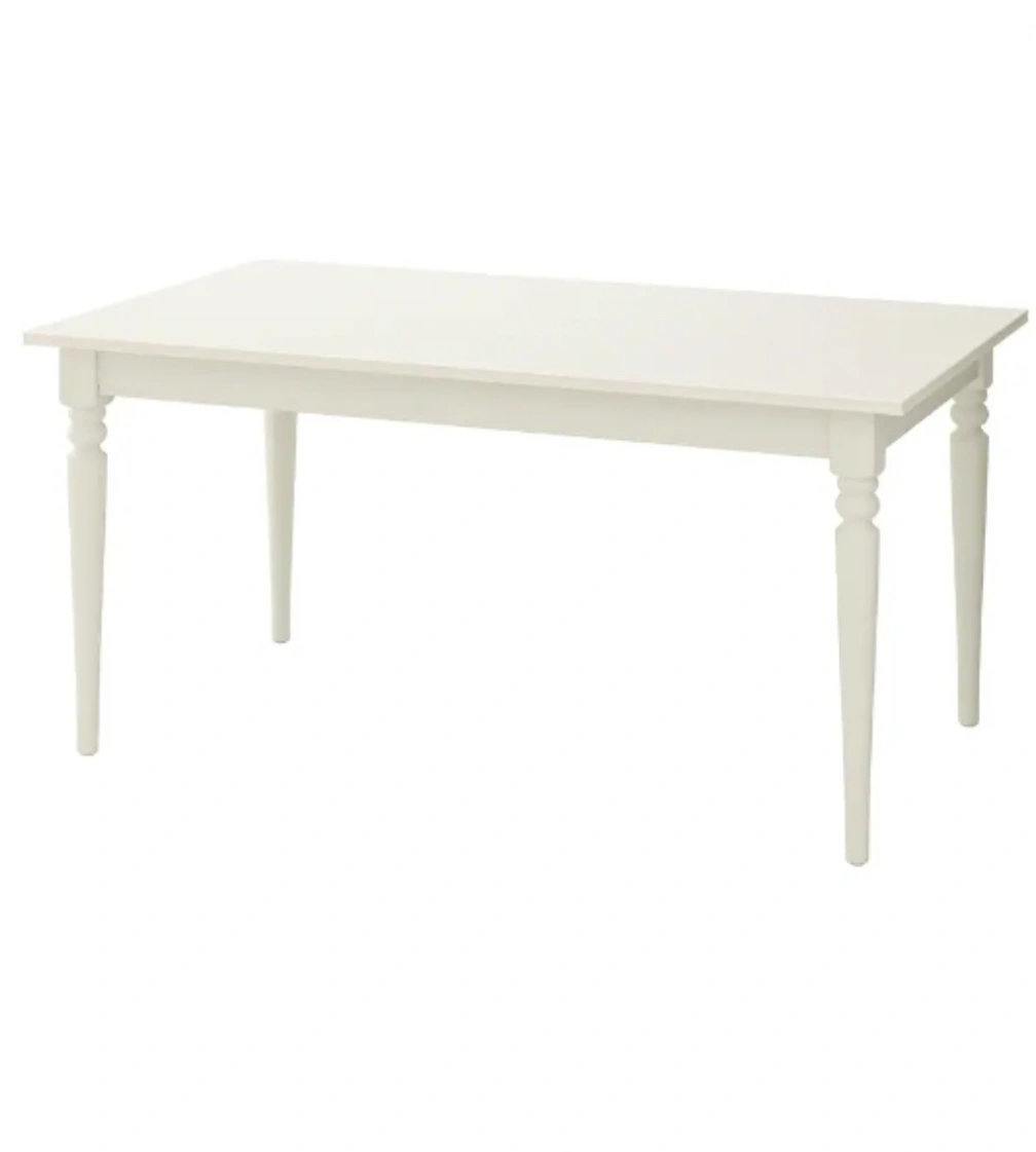 White IKEA dining table and chairs. Simple design, great for small spaces. Minimalist style. Good condition. see website for dimensions. Sorry table was already taken apart before photos, so I've used the stock ones from the internet. Table comes with a large thick glass top, and fits when not extended. Table extends. Used, so there are light scratches and scuffs, but overall in great shape, price reflective. Originally $600+