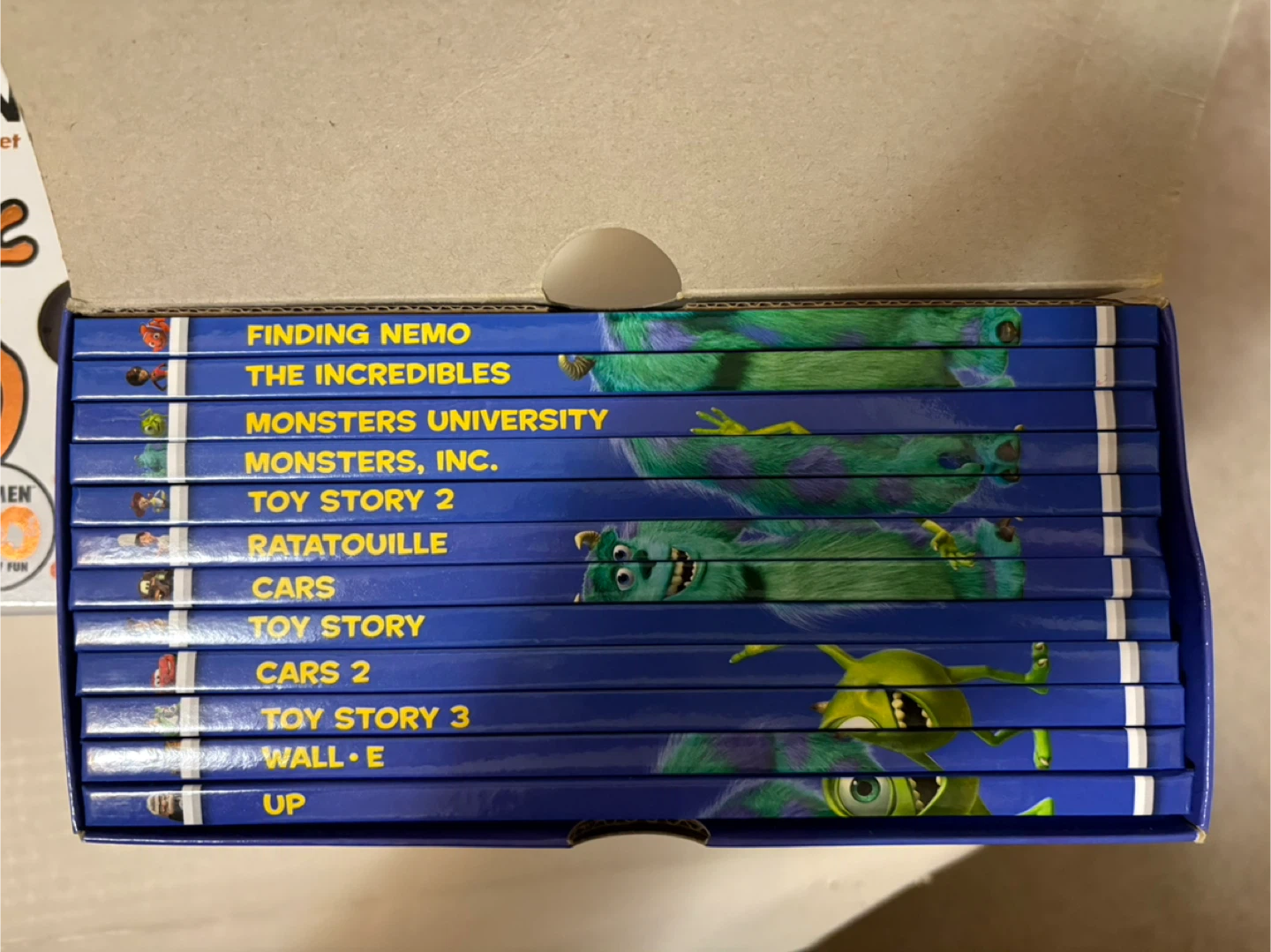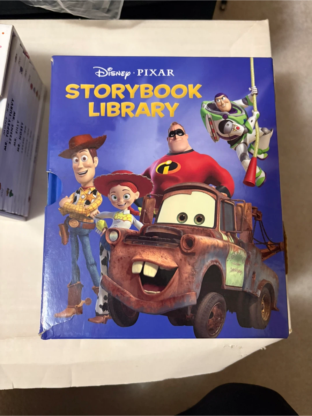 This Disney Pixar Storybook Library includes 12 books featuring popular movies like Toy Story, Cars, and Monsters, Inc. It's a great collection for young readers who love these animated films. The set comes in a sturdy box for easy storage. Lightly used and in good condition.