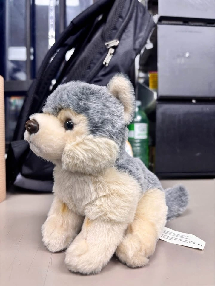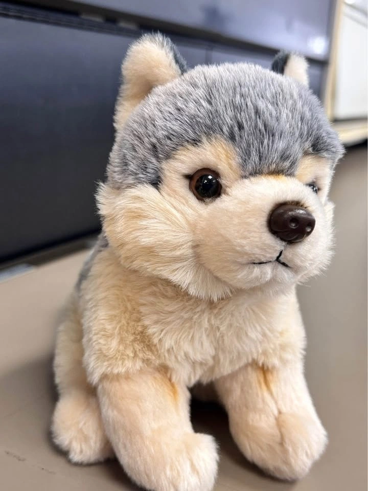 This is a cute and cuddly husky plush toy, perfect for any husky lover or as a gift. It's soft and huggable, making it a great companion. Let me know if you're interested!